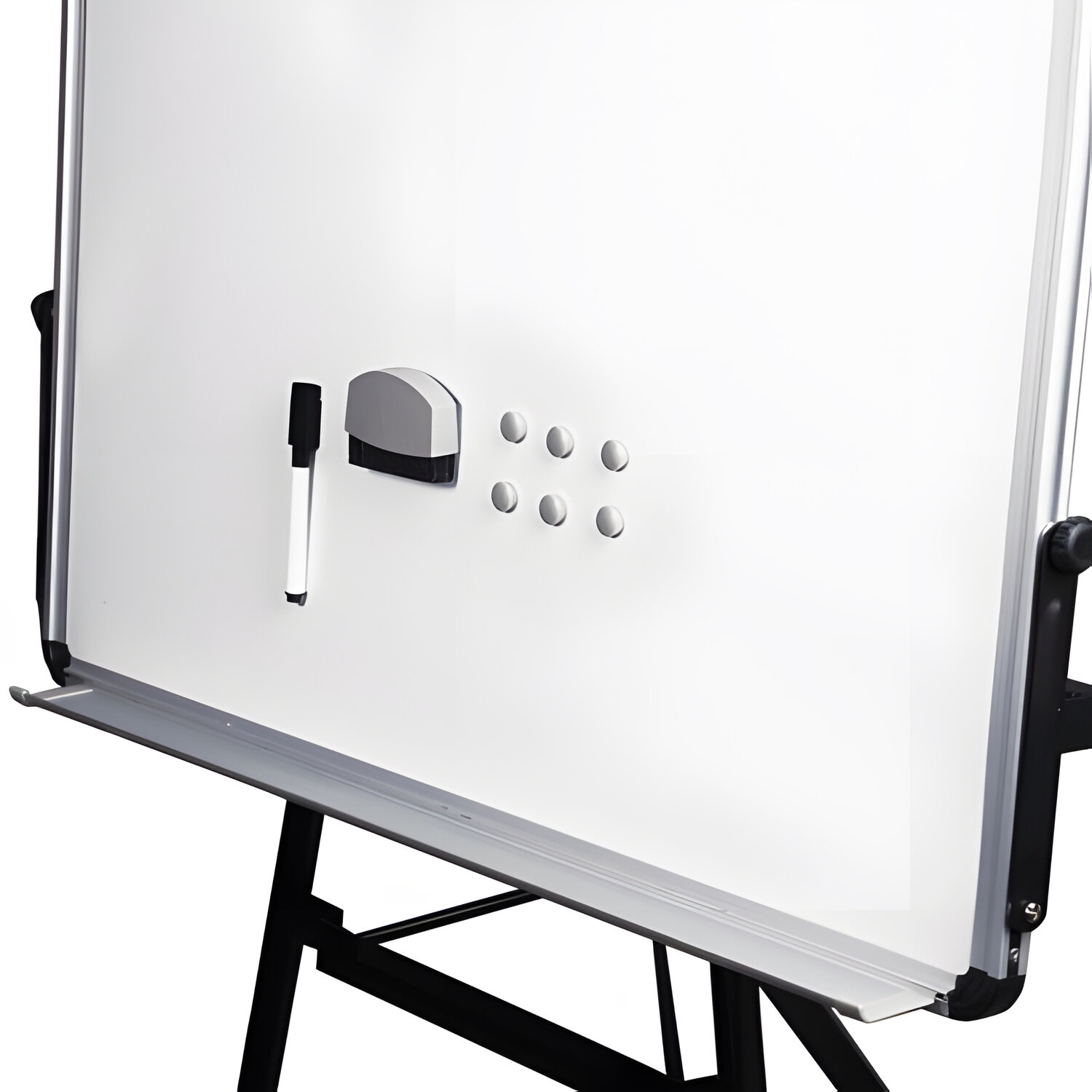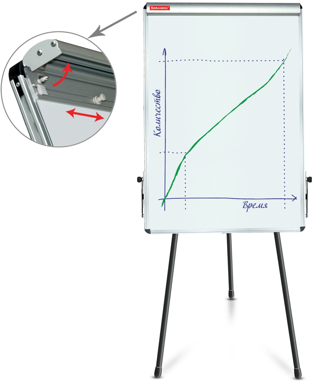 Белое лаковое покрытие предназначено для письма специальными маркерами для белой доски. Регулируется по высоте до 185 см. Устанавливается на треноге. Металлическая поверхность позволяет размещать объявления при помощи магнитов.