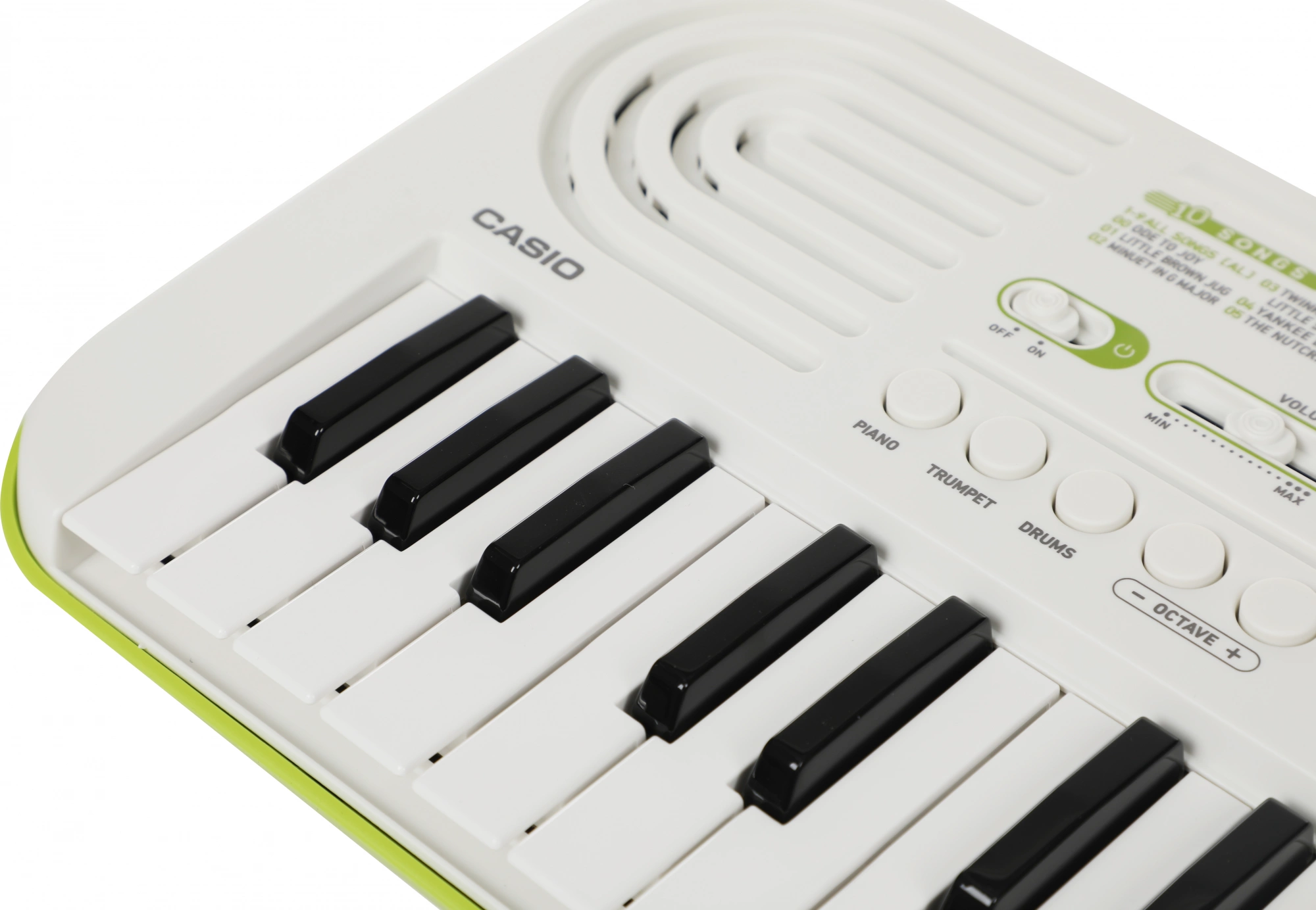 10 встроенных песен: Ода радости, Little Brown Jug, Менуэт соль мажор, Twinkle, Twinkle Little Star, Yankee Doodle, The Nutcracker, Greensleeves, Jingle Bells, Silent Night, Joy to the World.