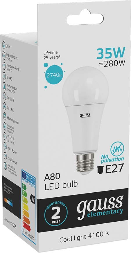 Светодиодная лампа Gauss - самый безопасный для здоровья и окружающей среды источник света. Она не пульсирует, мгновенно включается, не содержит ртути, и имеет больший срок службы, чем лампы накаливания и КЛЛ.