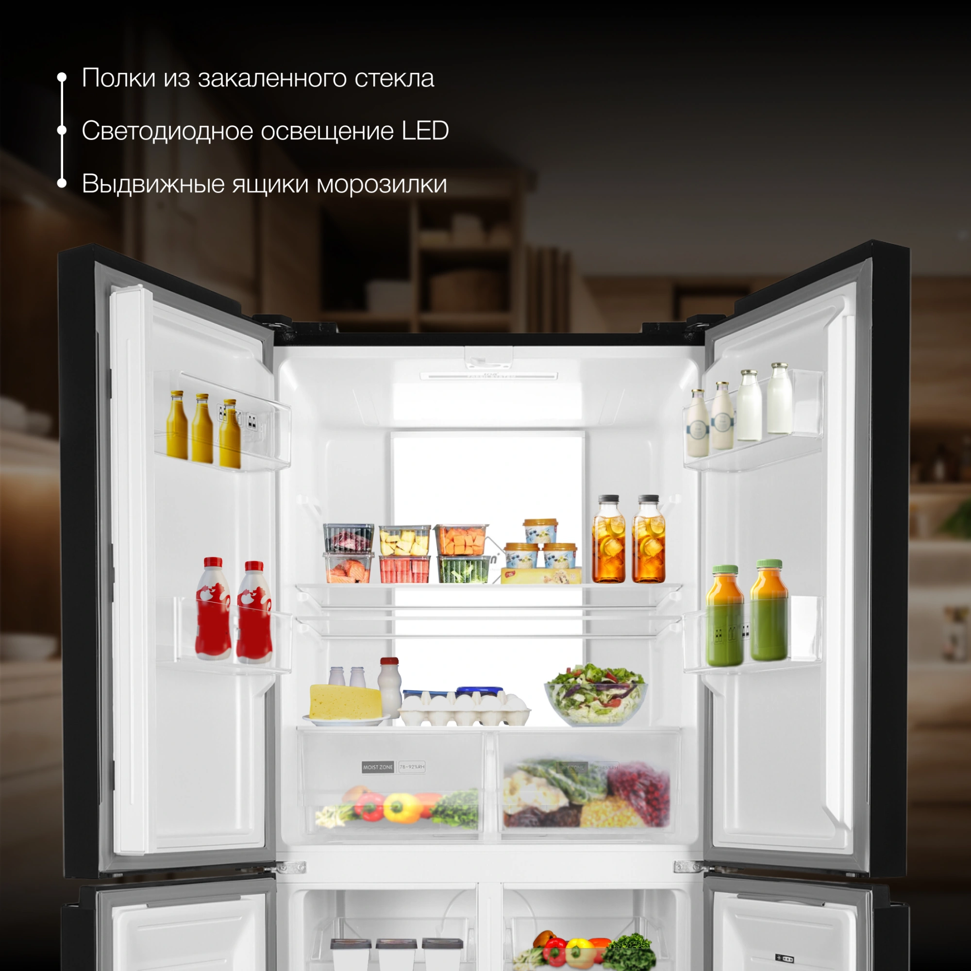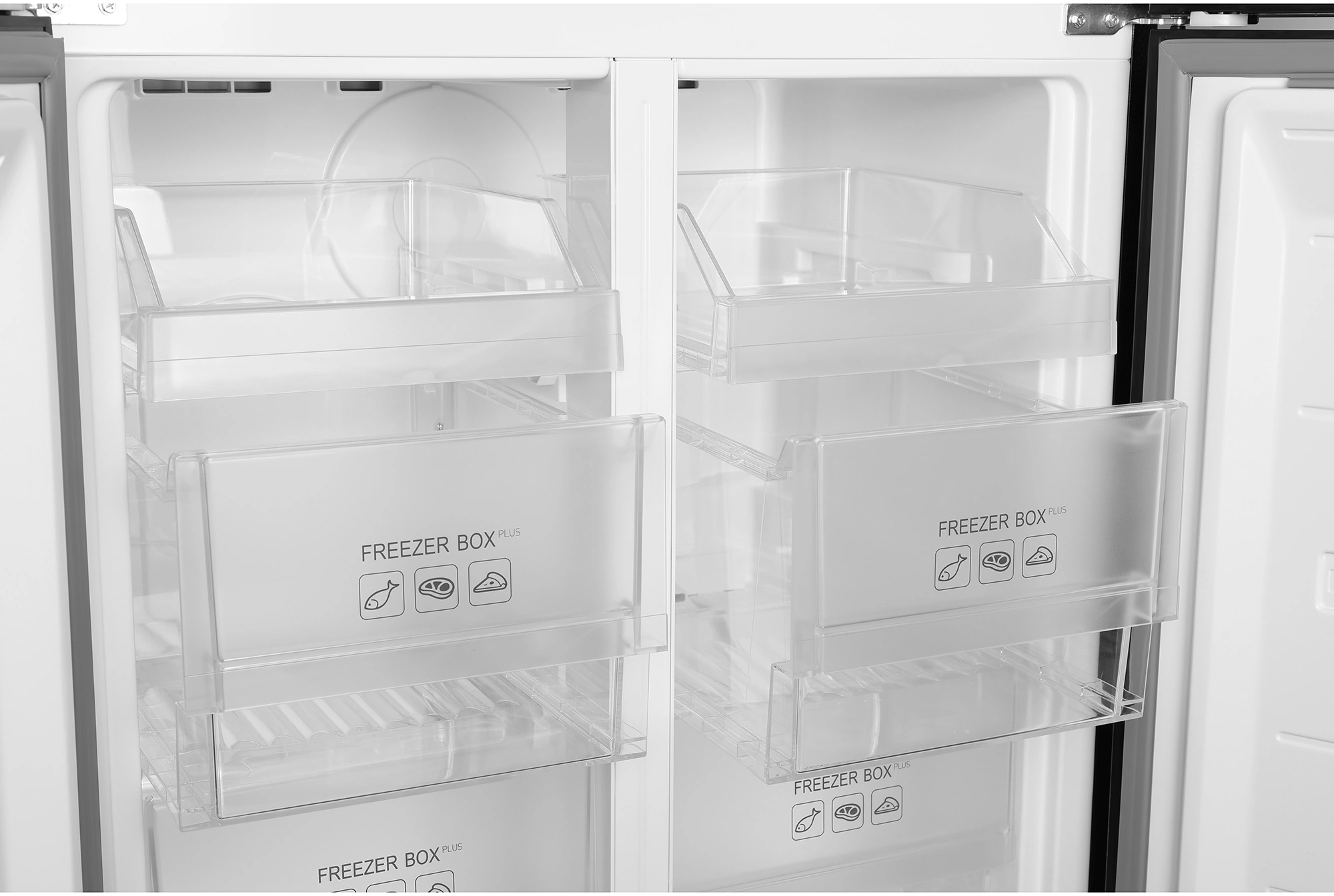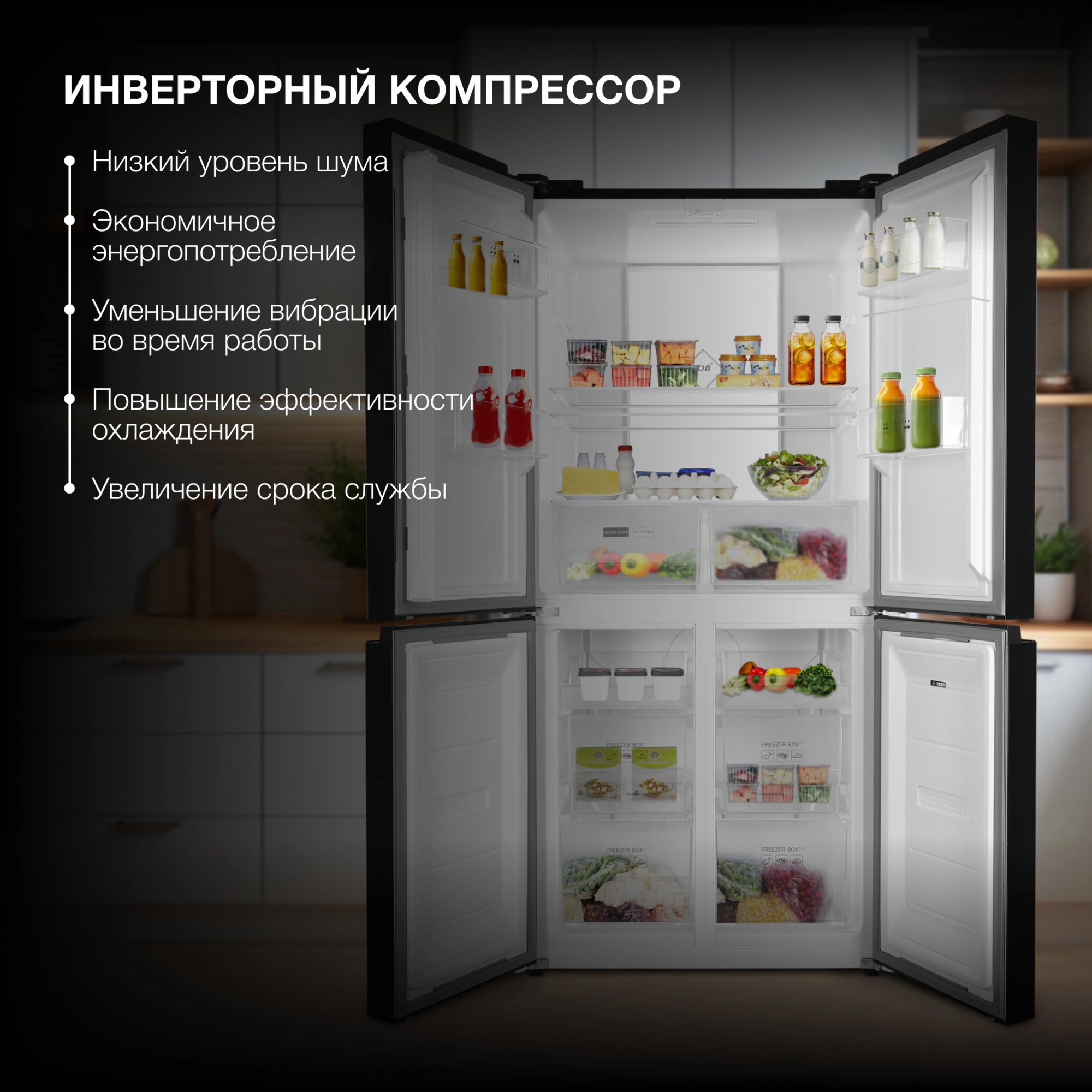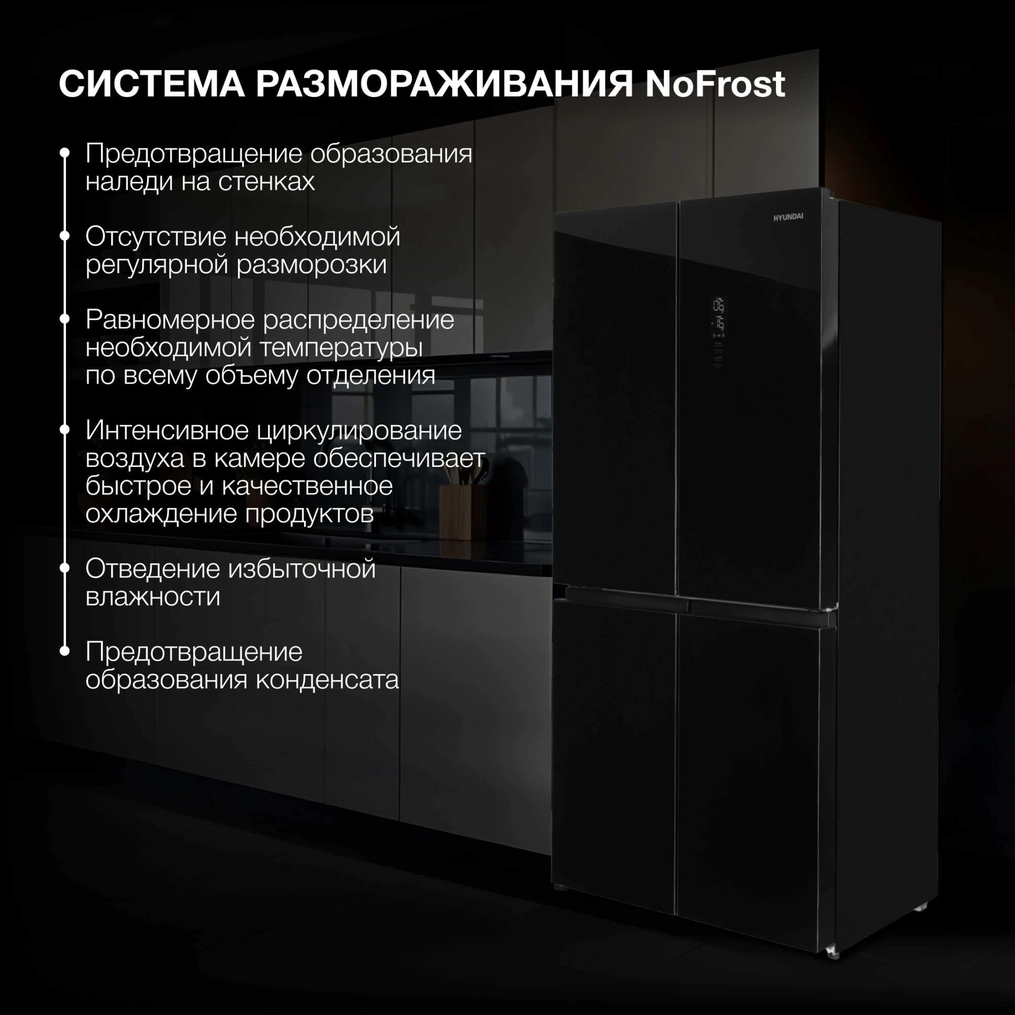 Трехкамерный холодильник Hyundai CM4584F с изысканным дизайном и типом дверей Side by Side станет идеальным решением для большой семьи. Современные технологии, такие как Total No Frost, обеспечивают длительное сохранение свежести продуктов, делая этот холодильник отличным выбором для любого дома.