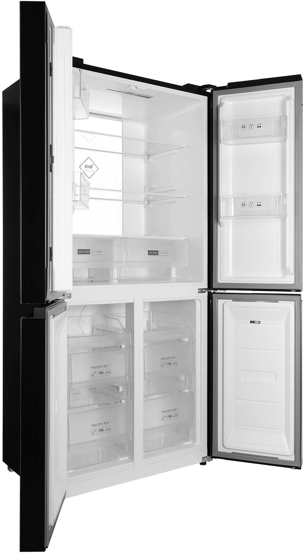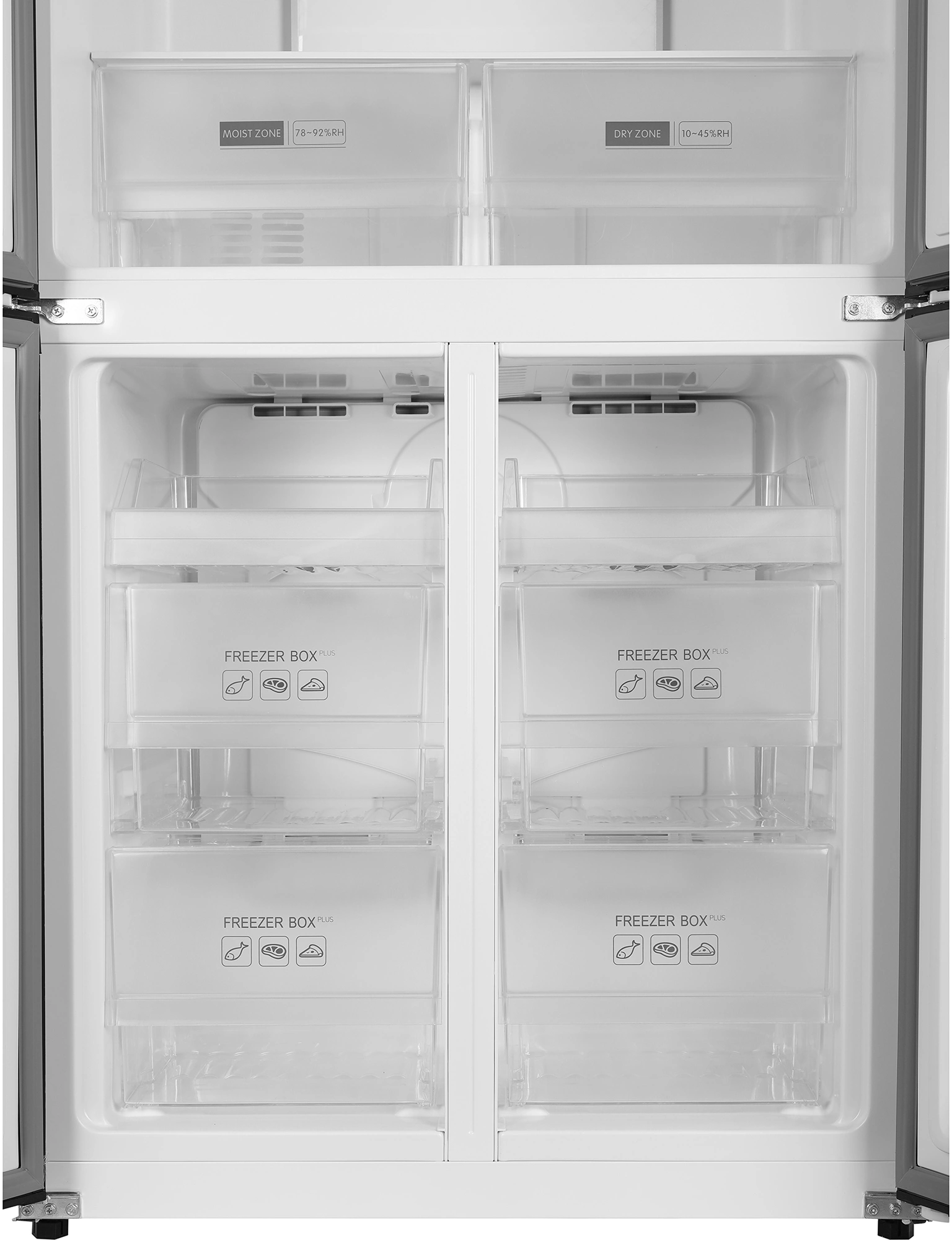 Общий полезный объем холодильника составляет 433 литров, из которых 289 литров отведено под холодильную камеру, а 144 литров — под морозильную, расположенную внизу. Холодильник обладает высокой мощностью замораживания — до 13 кг в сутки, а функции суперохлаждения и суперзаморозки гарантируют быстрый переход к необходимым температурам.