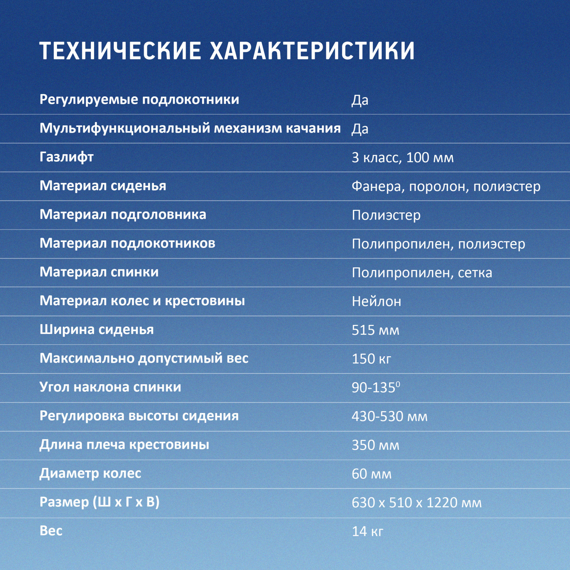 Надежный газлифт 3-его класса с усиленным металлическим механизмом выдерживает нагрузку до 150 кг. Крестовина и колесики выполнены из легкого и прочного нейлона, который обеспечивает высокую надежность конструкции. Кресло передвигается по поверхности мягко, плавно и бесшумно. Обивка изготовлена из плотного и износостойкого полиуретана. Он позволит креслу надолго сохранить отличный внешний вид.