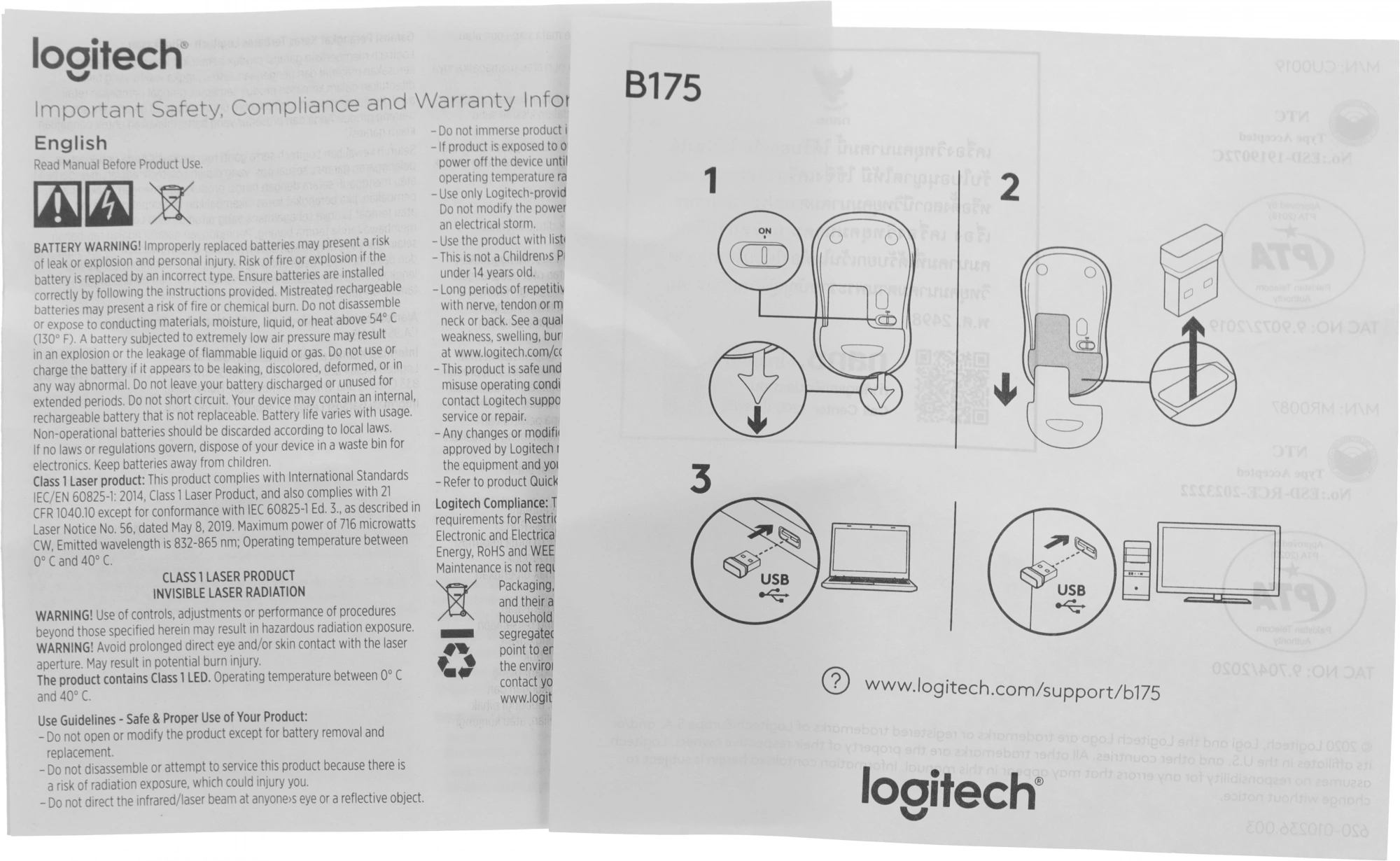 черный/серый оптическая 1000dpi беспров. USB для н...