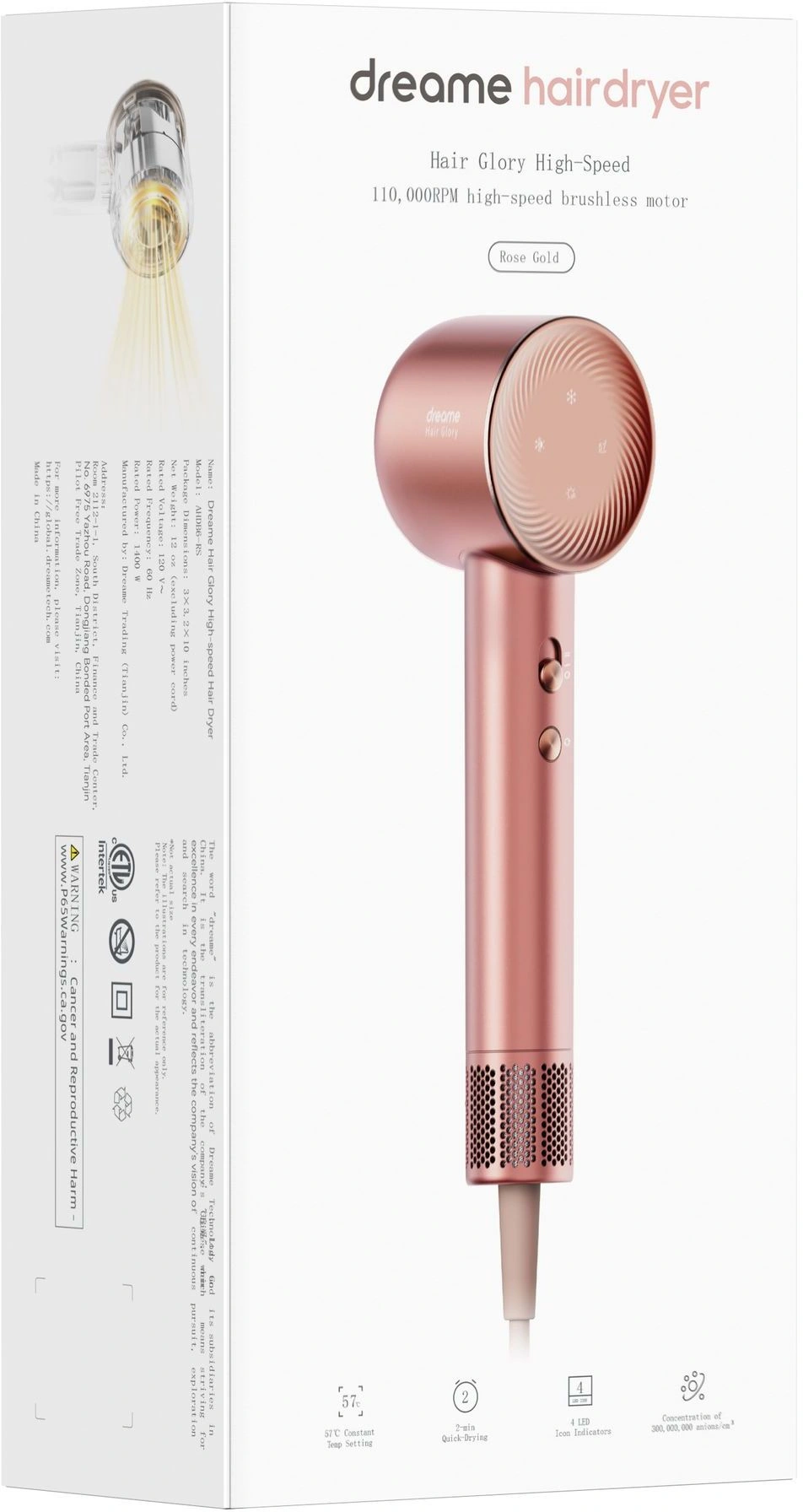 Система поддержания температуры 57°C, Сверхлегкий корпус, Встроенный генератор ионов, Снижение шума, Быстрая сушка за 3 минуты.