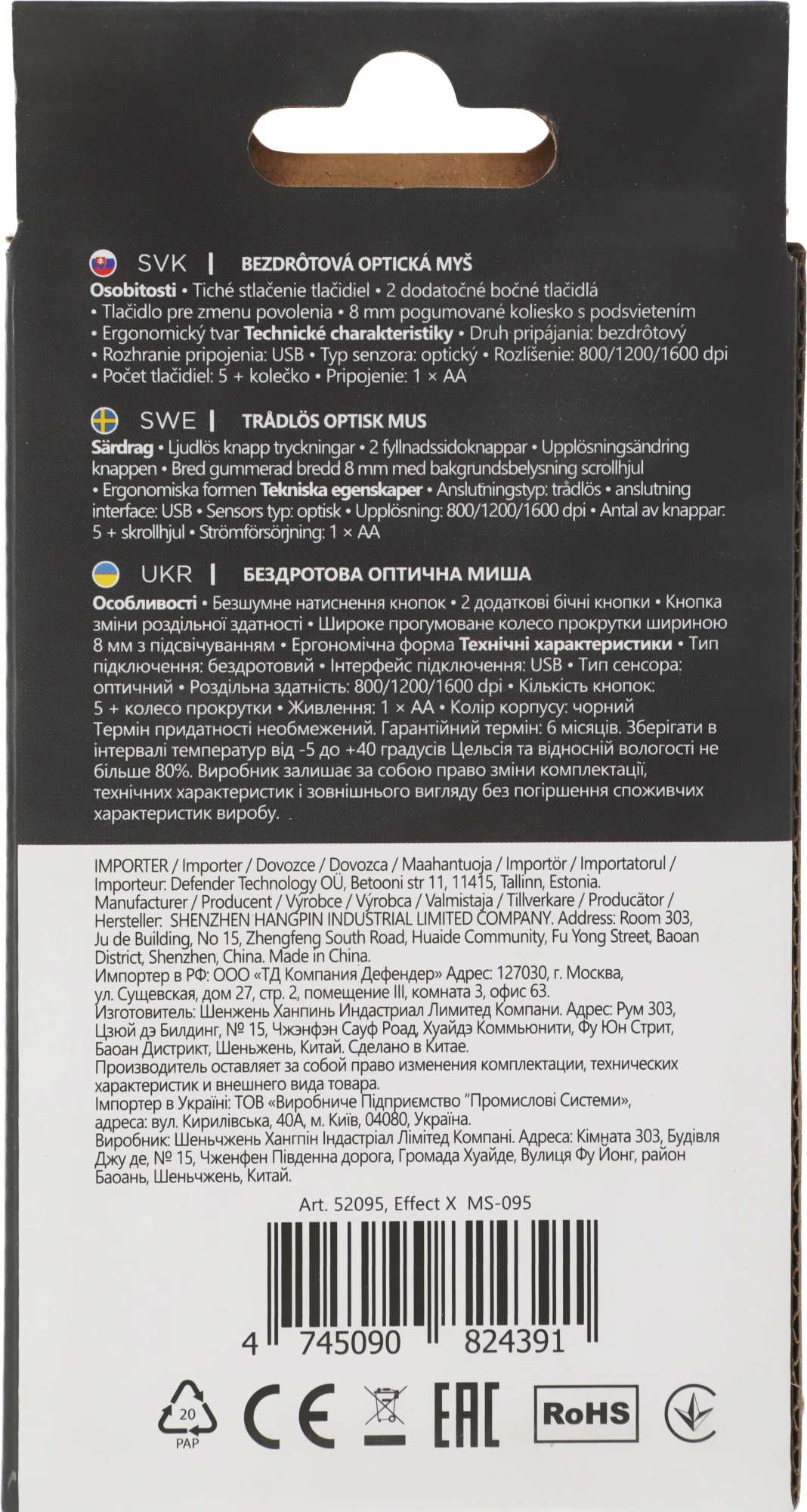 черный оптическая 1600dpi беспров. USB 5but (52095...