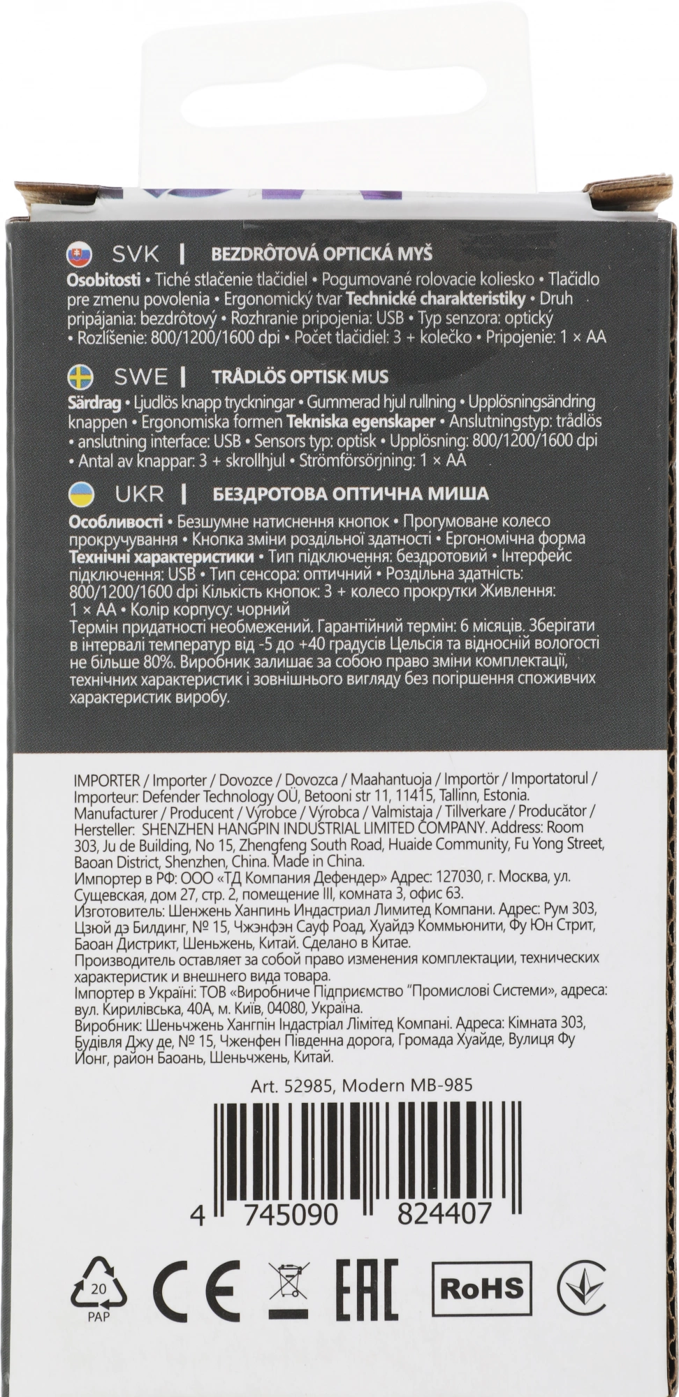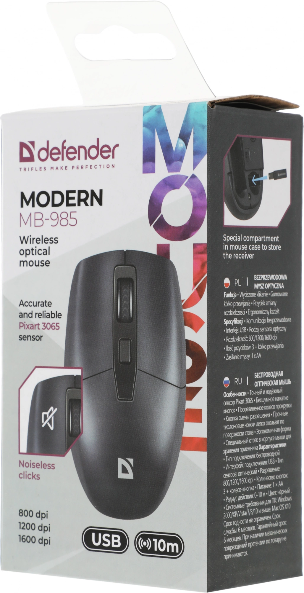 черный оптическая 1600dpi беспров. USB 3but (52985...