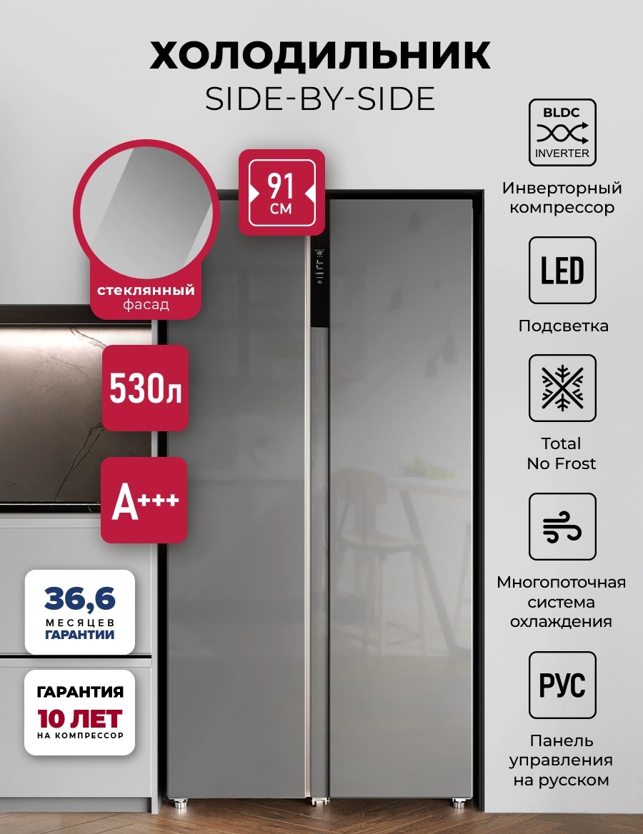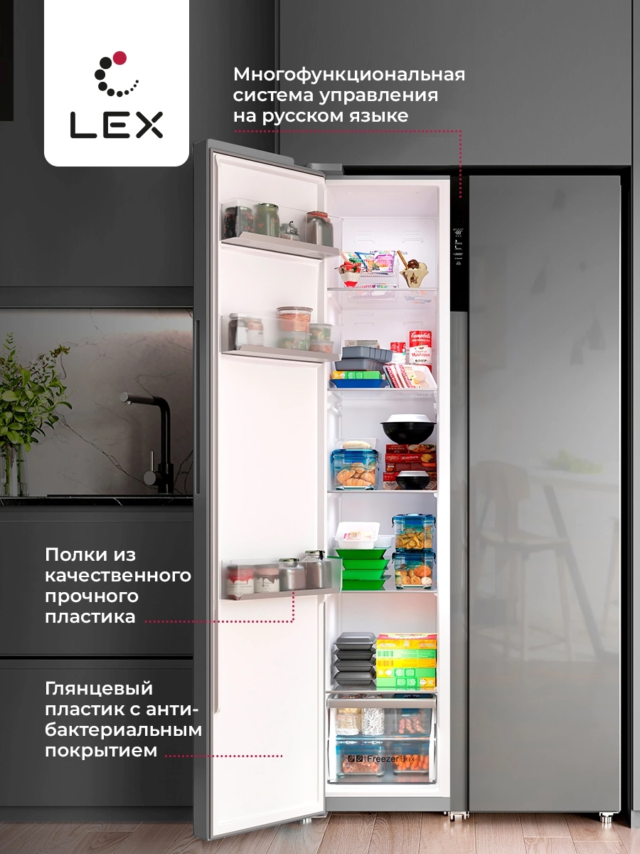 визуальная индикация отключения электропитания, звуковой сигнал незакрытой двери, температуры