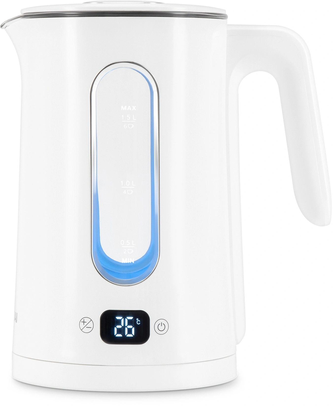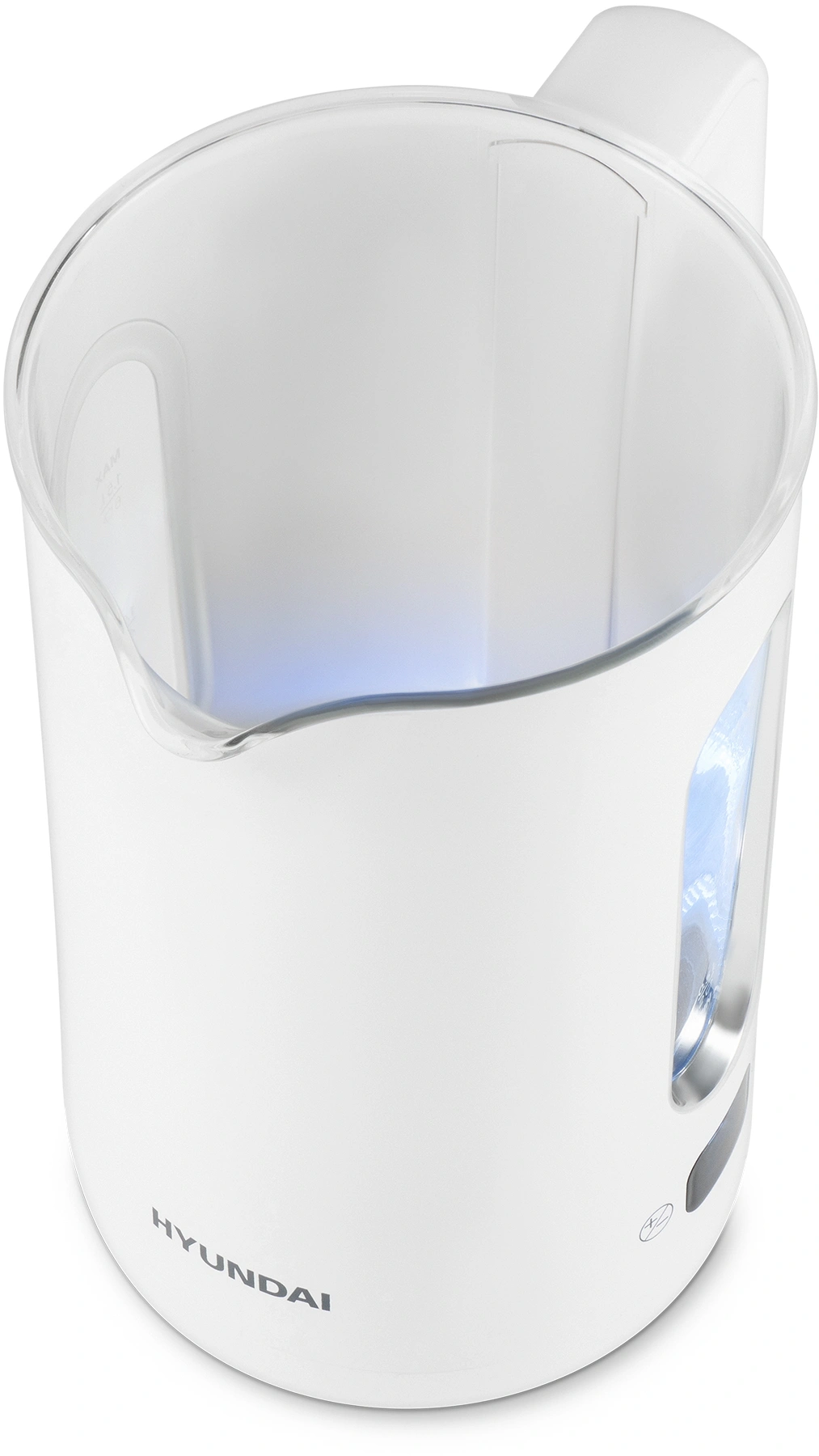Электрический чайник Hyundai HYK-G5510 в изысканном белом цвете со вставками из прозрачного стекла сочетает передовые технологии и стильный дизайн. Мощность в 2200 Вт гарантирует быстрое закипание, а вместительность в 1.5 литра обеспечит Вас горячей водой для всей семьи или дружеской компании.