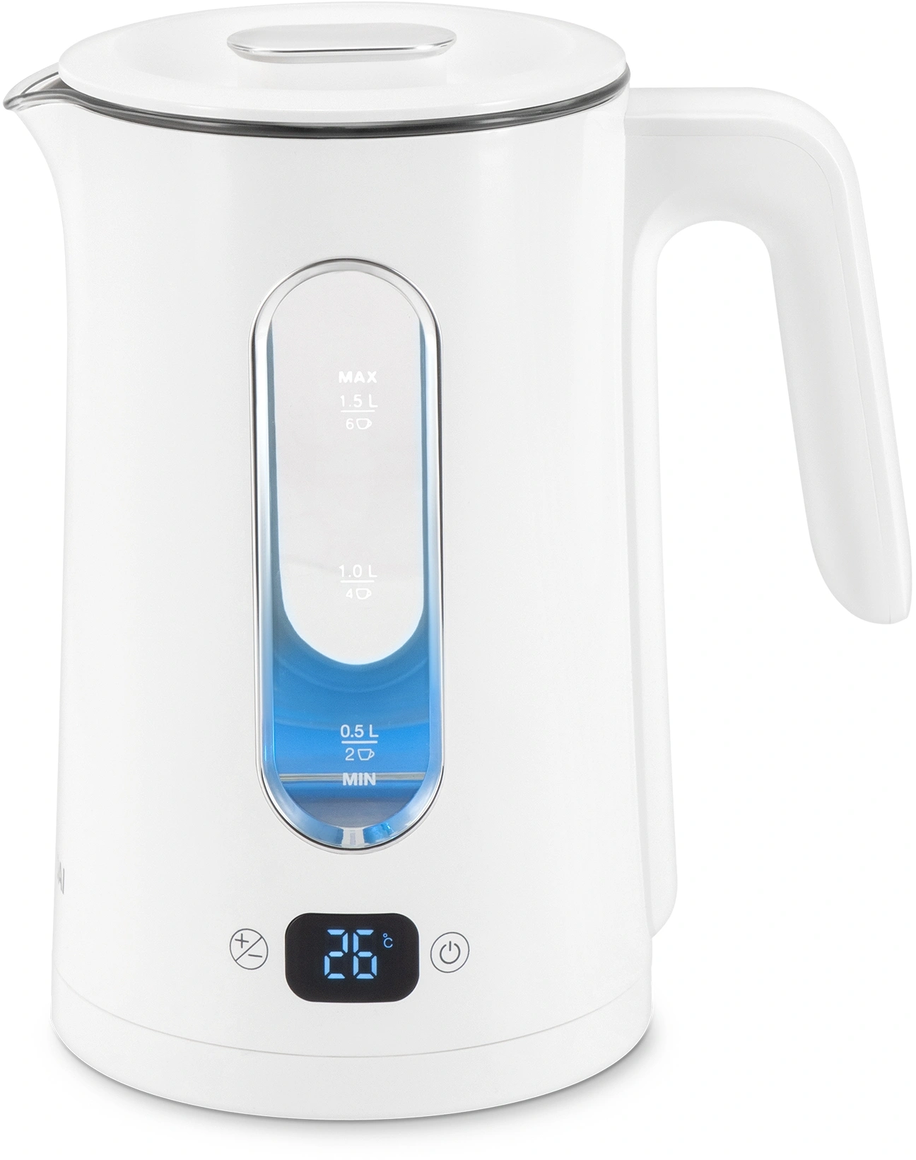 Скрытый нагревательный элемент обеспечивает быстрый и равномерный нагрев воды. Автоматическое отключение и защита от включения без воды повышают безопасность использования.