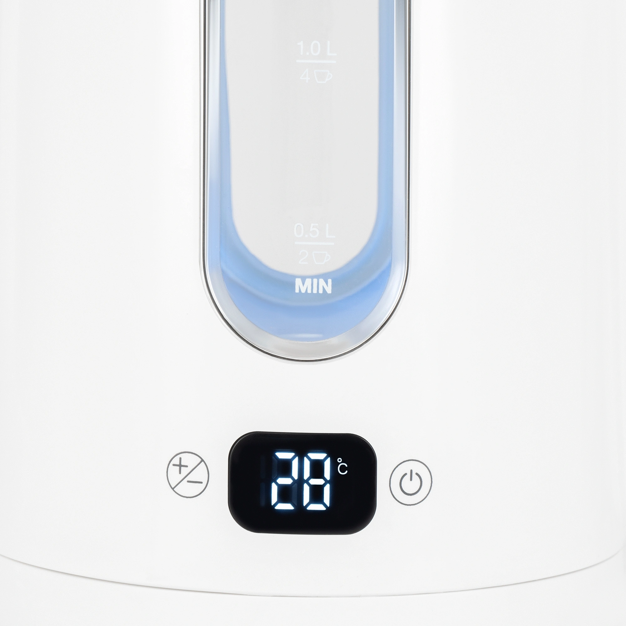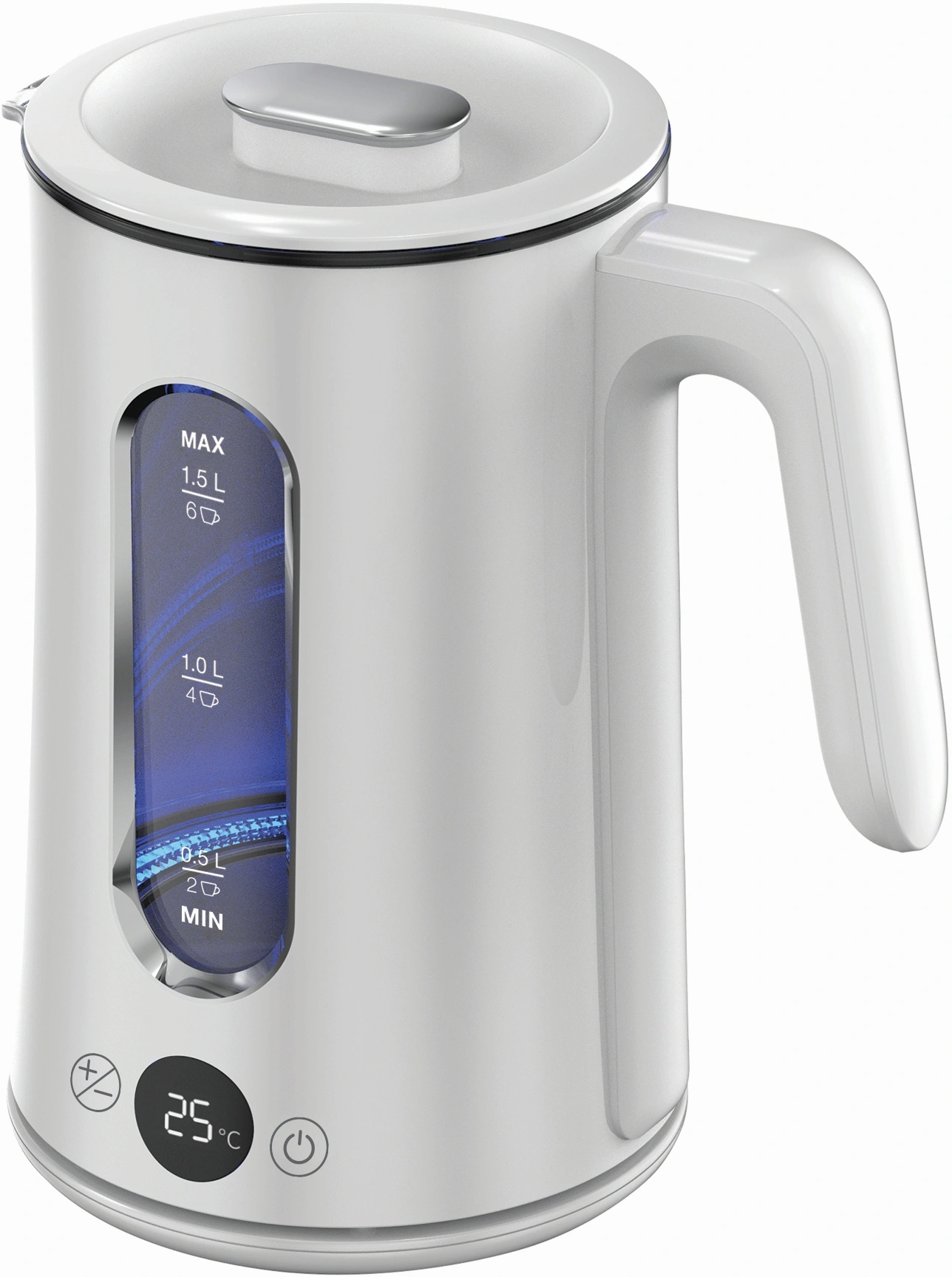 Особенностью этого чайника является LED-подсветка, которая меняет свой цвет в зависимости от температуры воды. Такой эффект не только придает эстетики процессу закипания, но и служит наглядным индикатором температуры. Полностью съемная крышка повышает удобство наполнения и очистки чайника.