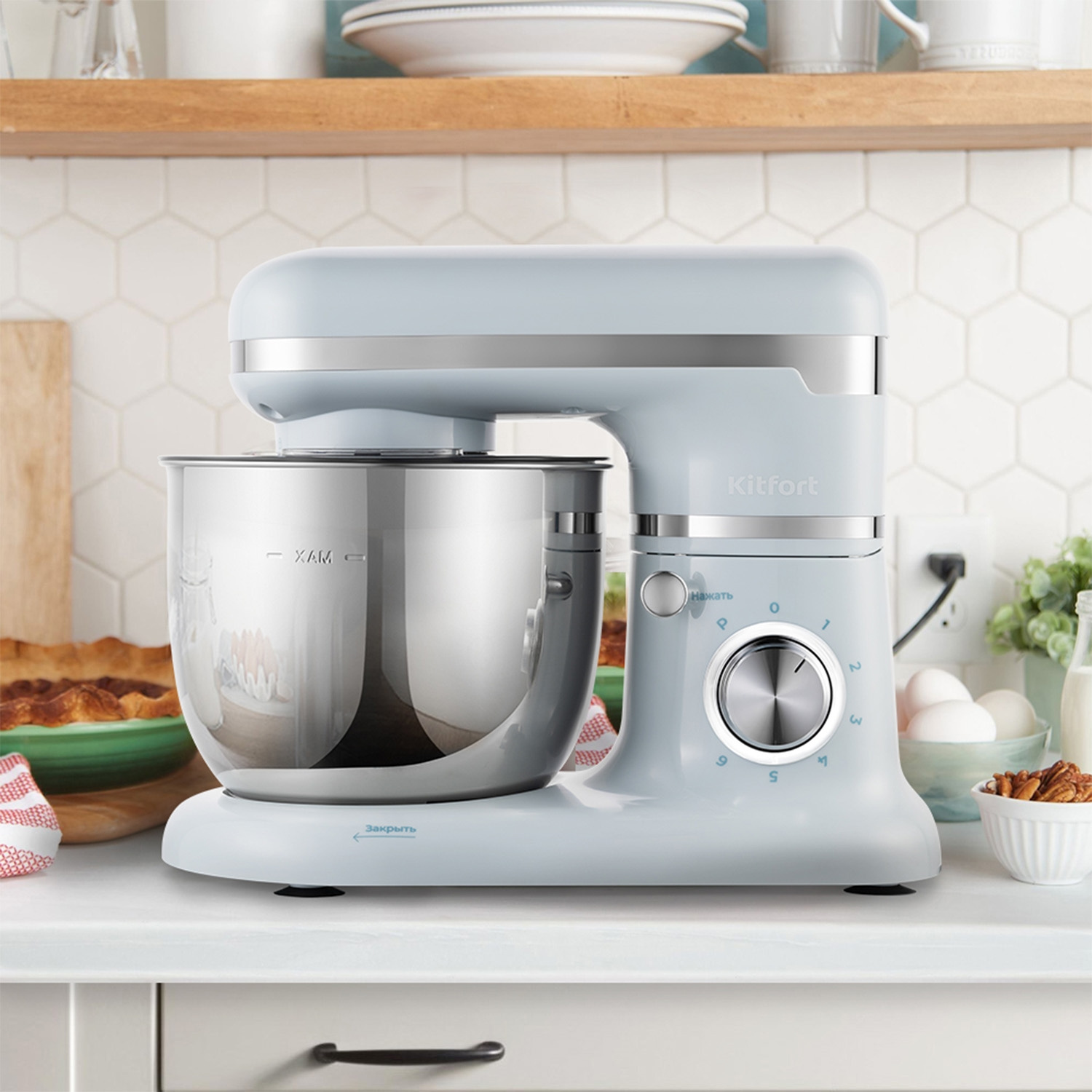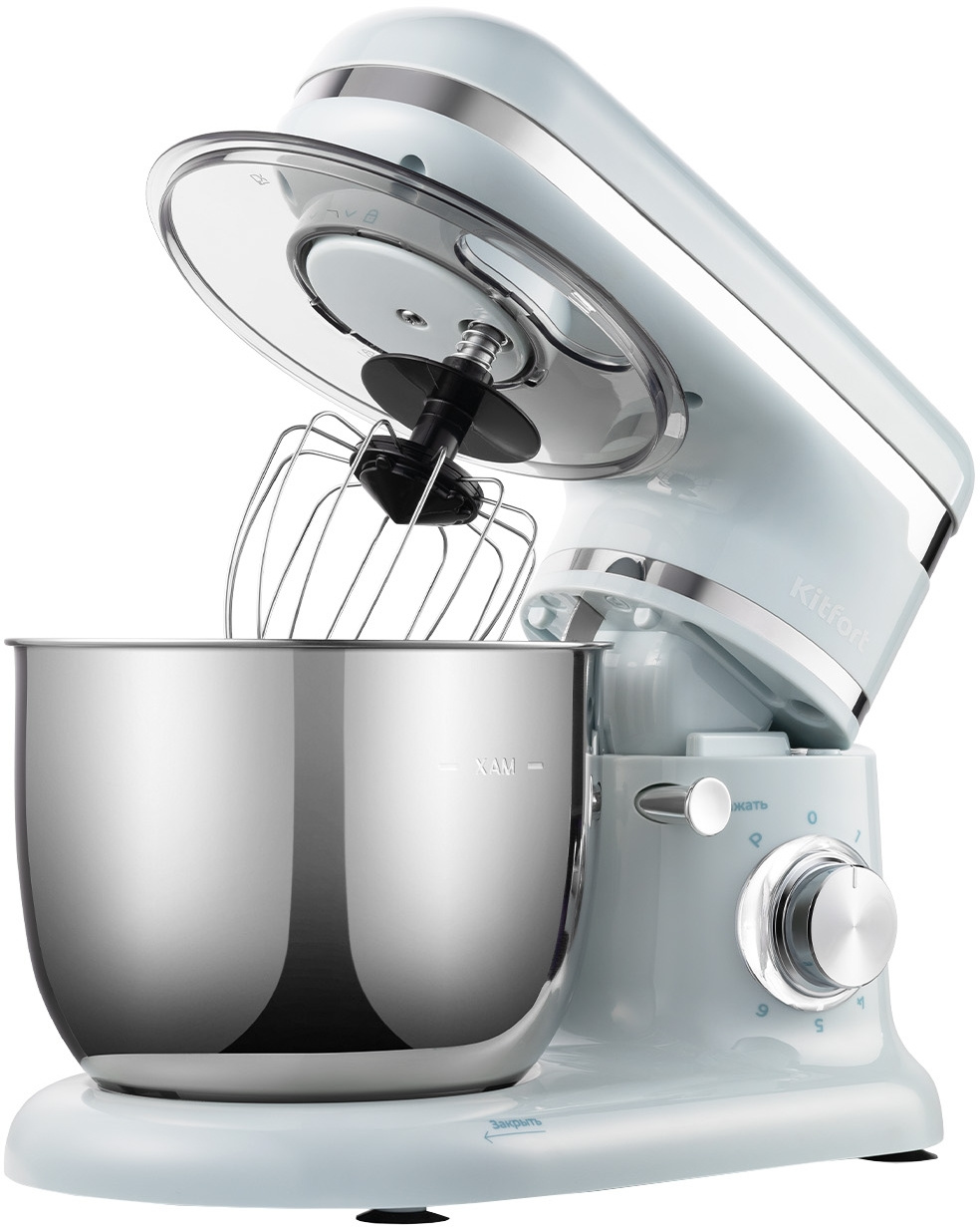 Планетарный миксер КТ-3422 с мощностью 1000 Вт и чашей на 5 л поможет вам смешать ингредиенты, взбить яичный белок или сливки, приготовить картофельное пюре, соус, крем, мусс, замесить жидкое тесто для блинов и крутое — для пельменей и пирогов.