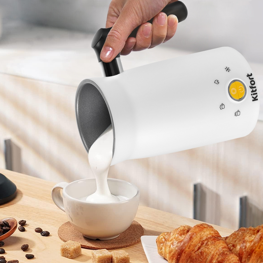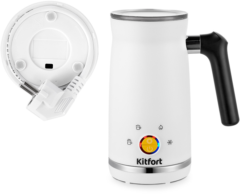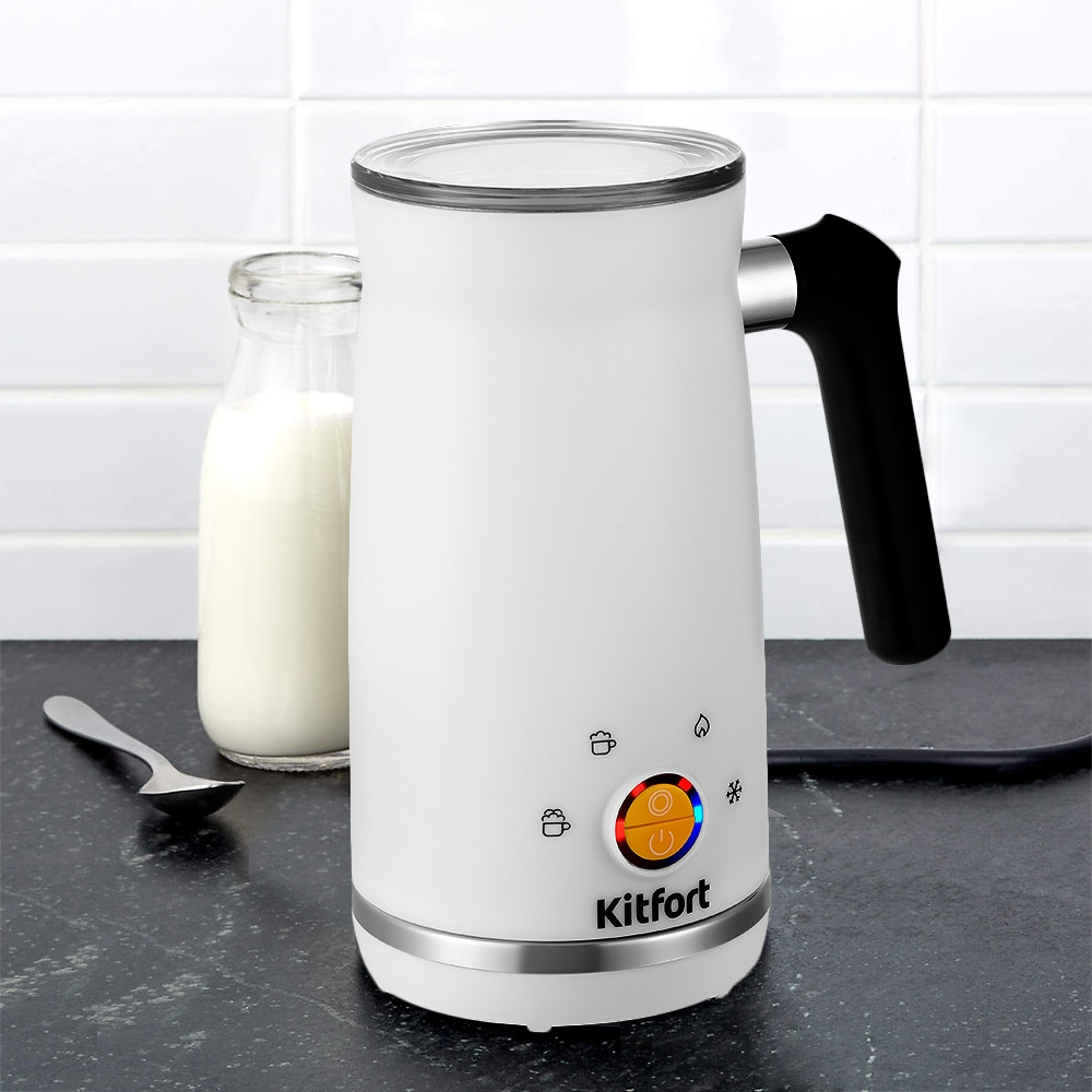 Капучинатор Kitfort КТ-7163 – это устройство для приготовления молочной пенки, используемой для напитков на базе эспрессо: капучино, латте и латте макиато. С его помощью также можно готовить соусы, какао, делать взбитые сливки.