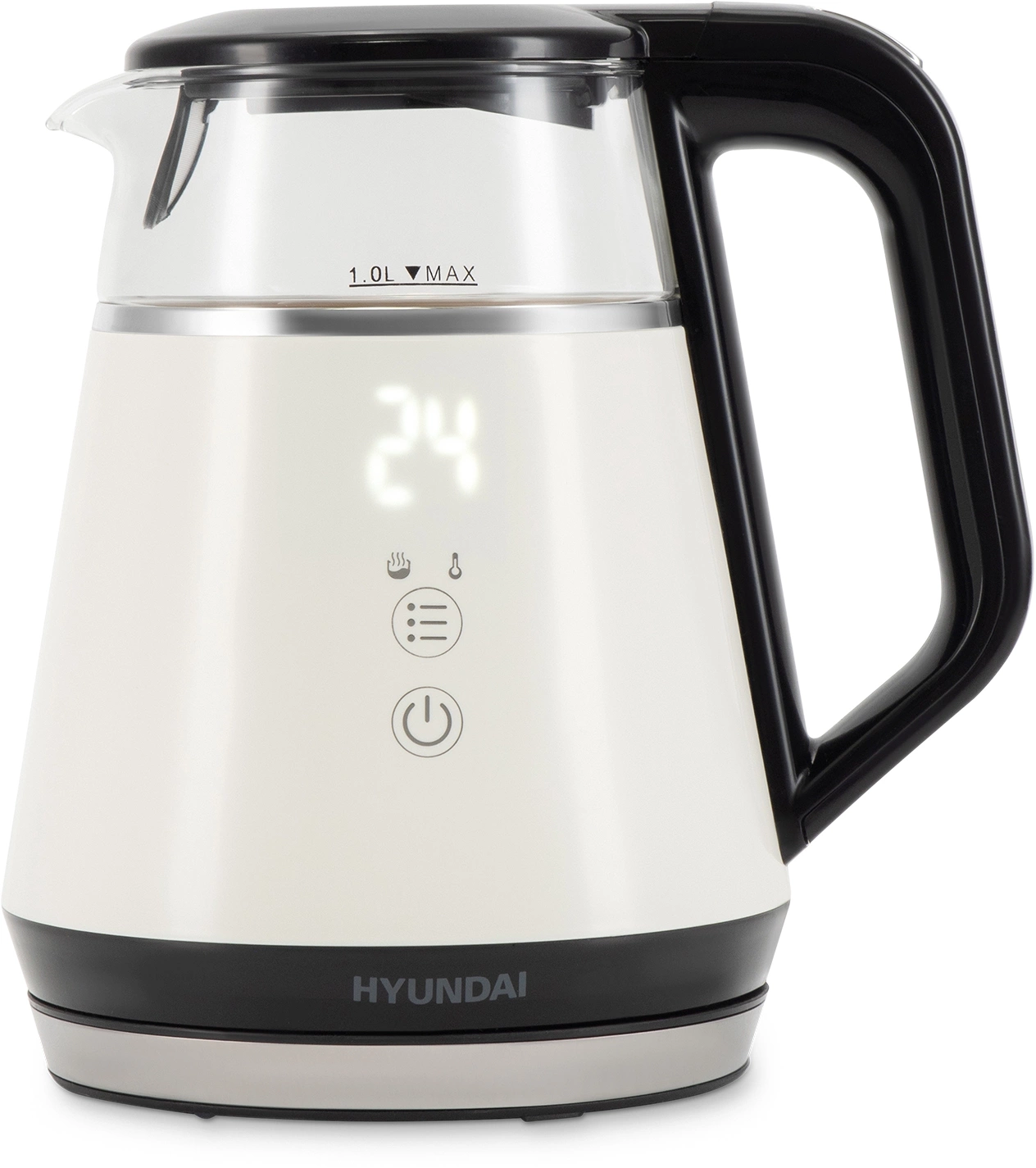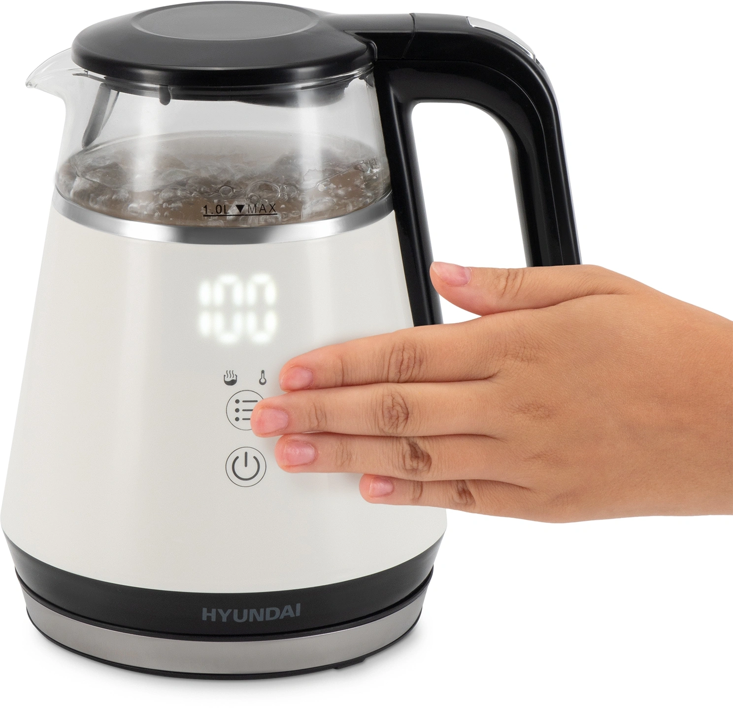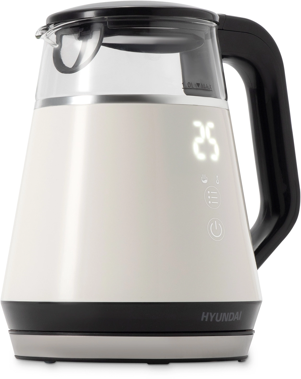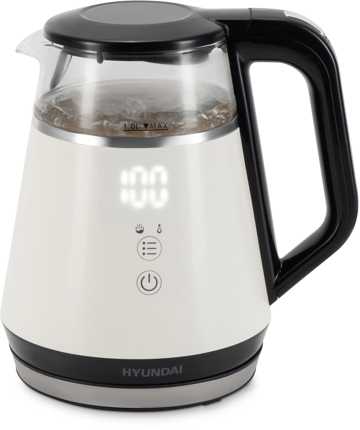 Hyundai HYK-G3013 предлагает 5 настраиваемых температурных режимов (45, 55, 65, 85 и 100 градусов Цельсия), а также функцию поддержания температуры. Наличие дисплея делает управление чайником интуитивно понятным и простым.