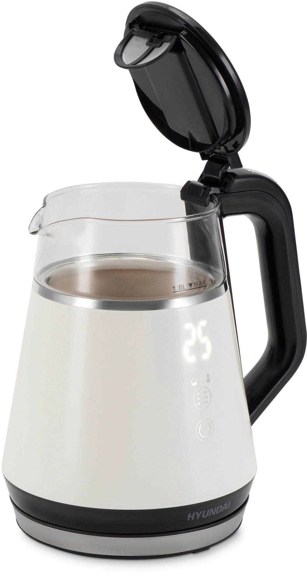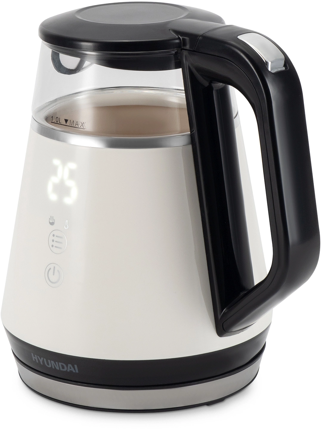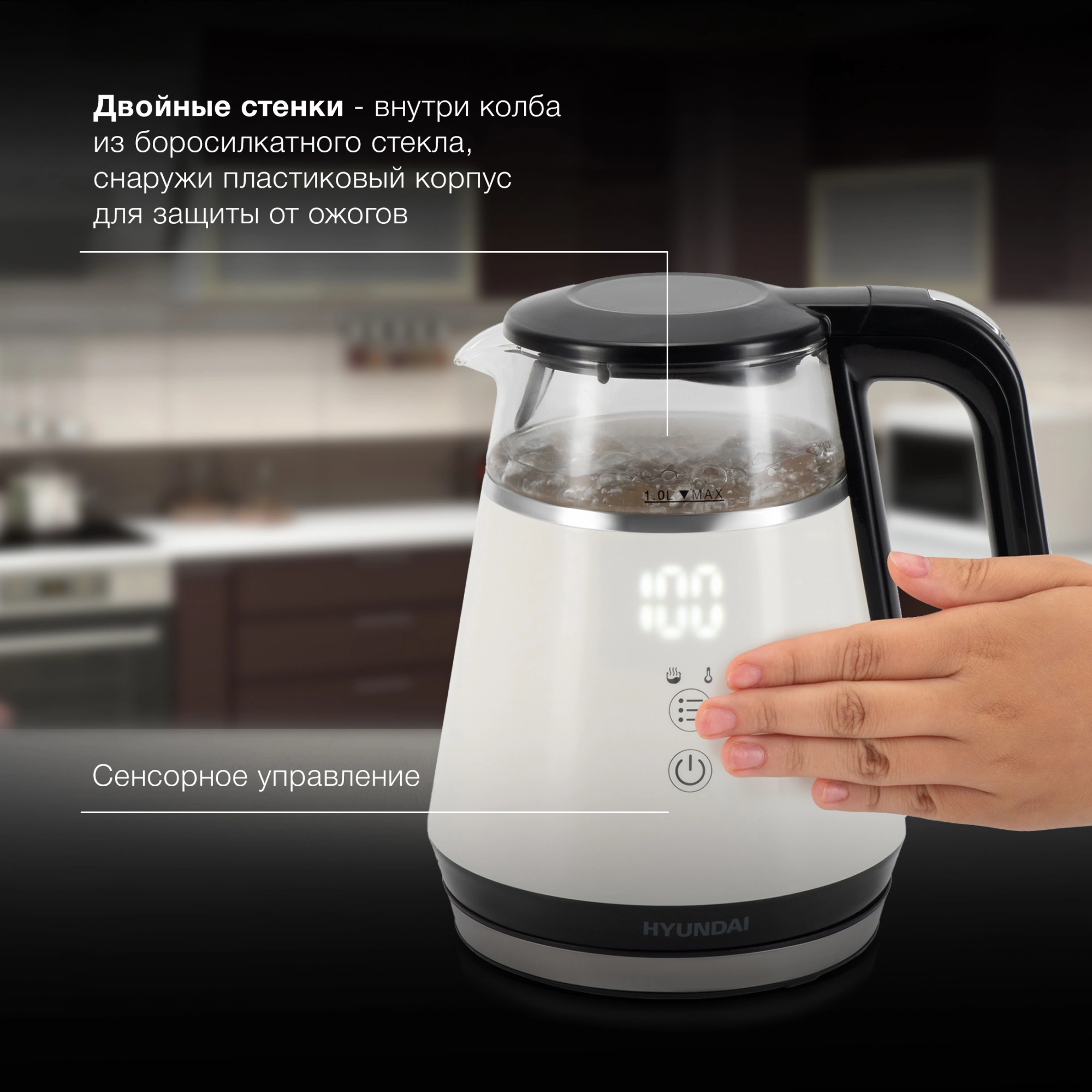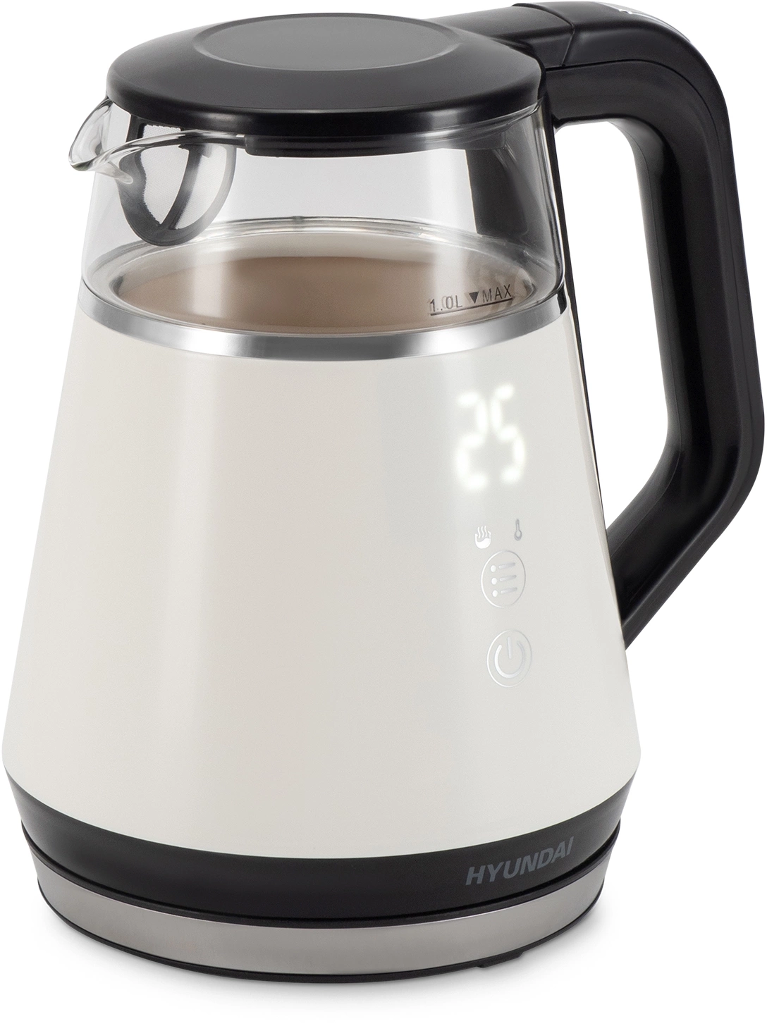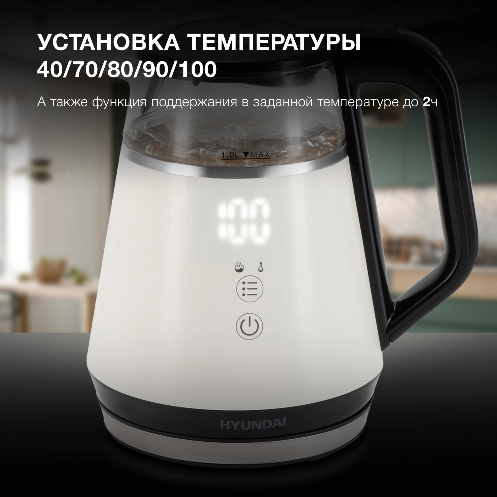 Hyundai HYK-G3013 предлагает 5 настраиваемых температурных режимов (45, 55, 65, 85 и 100 градусов Цельсия), а также функцию поддержания температуры. Наличие дисплея делает управление чайником интуитивно понятным и простым.