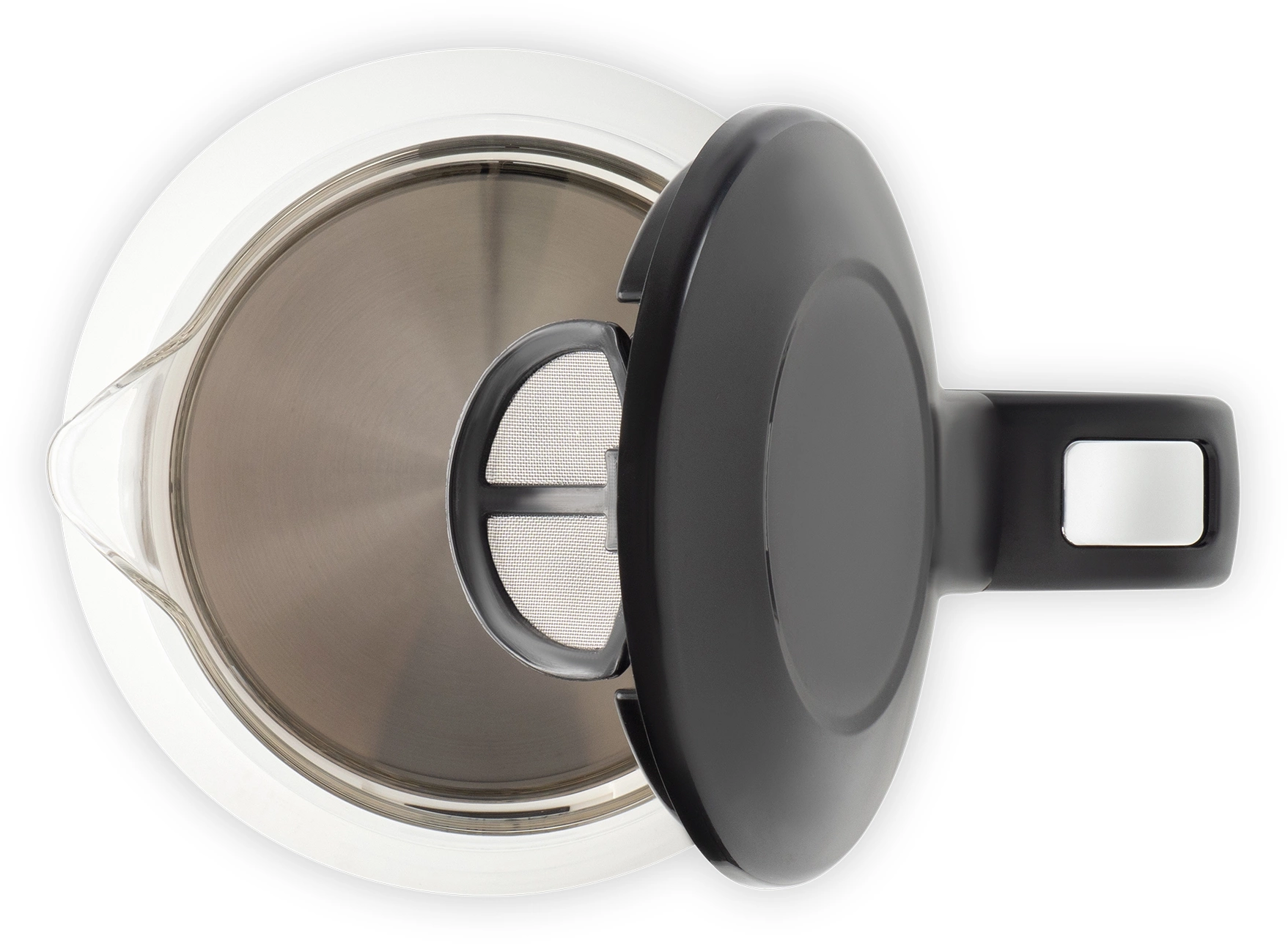 Скрытый нагревательный элемент обеспечивает быстрый и равномерный нагрев. Благодаря наличию фильтра от накипи вода остается чистой и напитки не приобретают посторонних привкусов. Автоматическое отключение и защита от включения без воды гарантируют безопасность использования. Звуковой сигнал оповещает о закипании. Подставка с вращением на 360 градусов и удобная кнопка открытия крышки делают использование удобным.