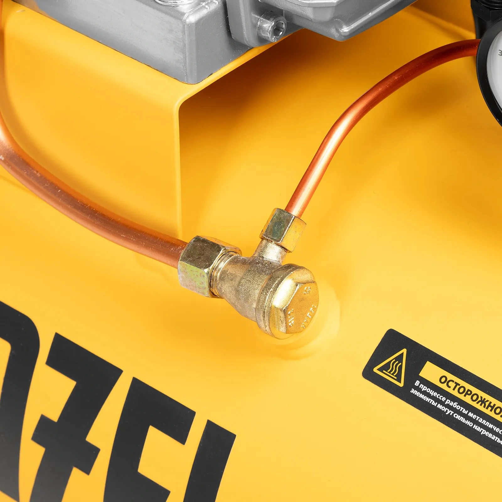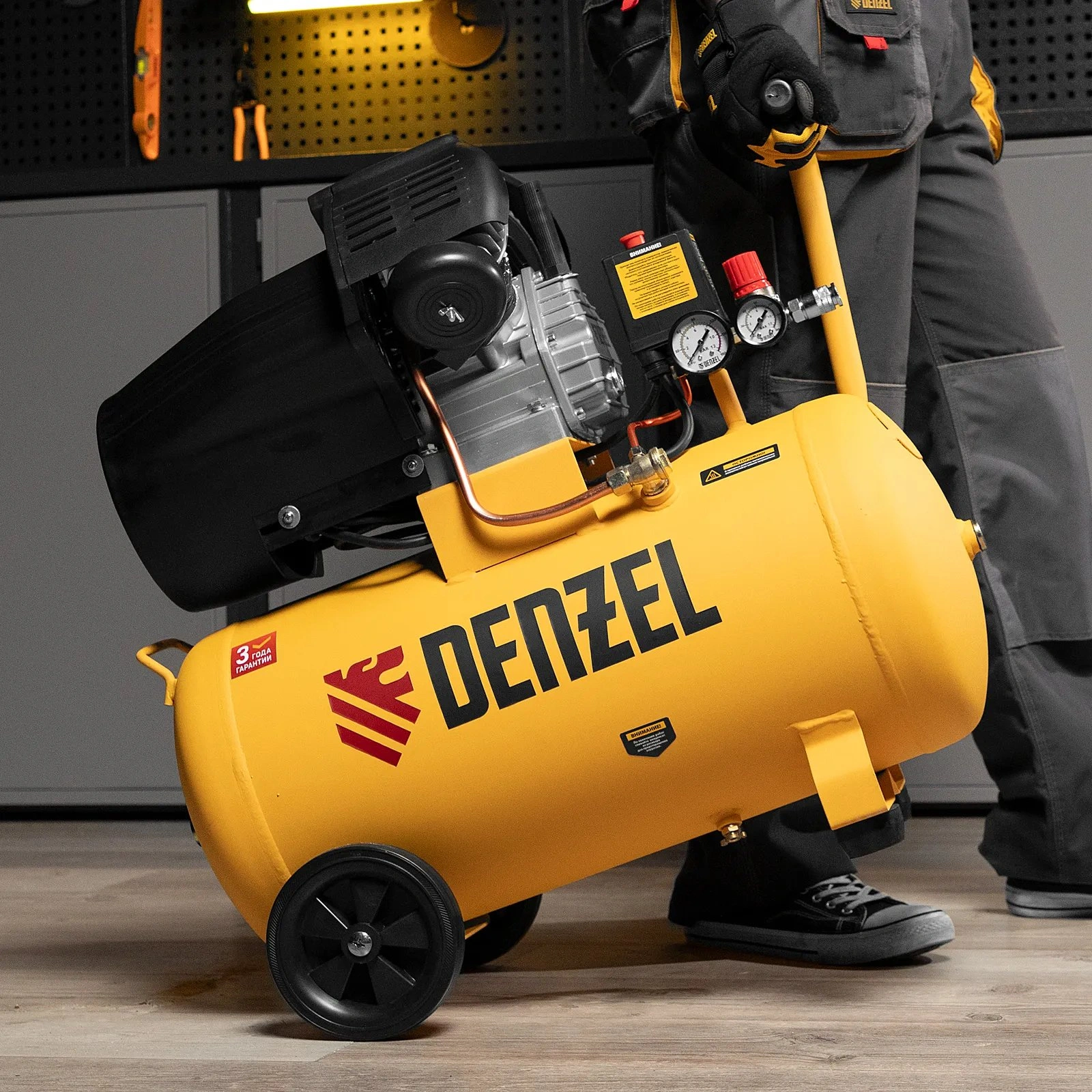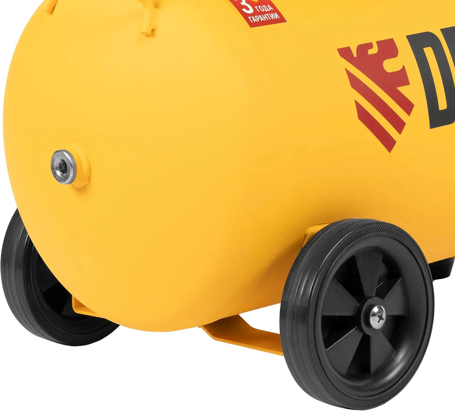 Компрессор, колесо с крепежом - 2 шт., воздушный фильтр - 2 шт., виброопора с крепежом - 2 шт., сапун, масло компрессорное минеральное, марка DAB 100 - 360 мл, руководство по эксплуатации с гарантийным талоном.