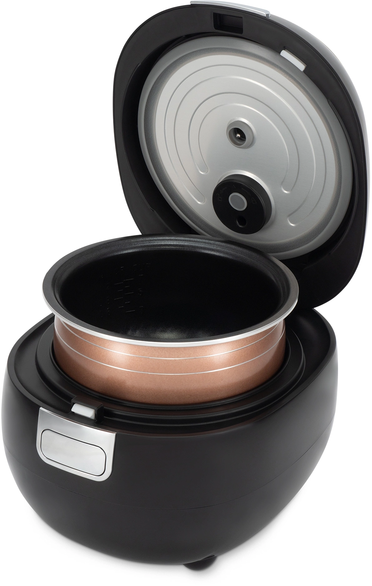 Удобная крышка мультиварки легко снимается и моется, а корпус имеет специальное покрытие, устойчивое к царапинам и другим повреждениям.