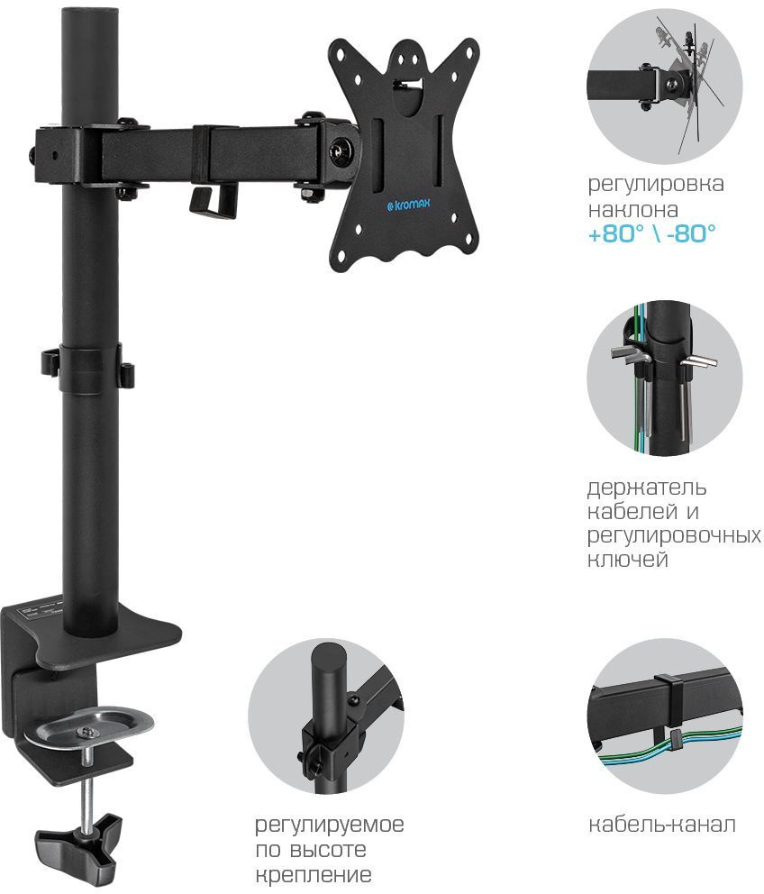 черный 10"-34" макс.10кг настольный поворот и накл...