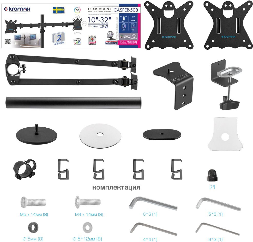 черный 10"-32" макс.10кг настольный поворот и накл...