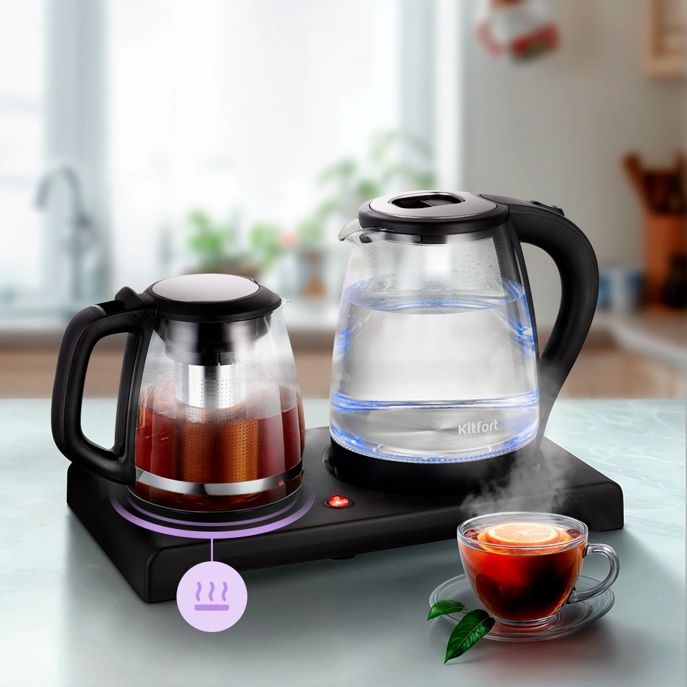 Стильный и функциональный чайный набор Kitfort КТ-6179 состоит из чайника ёмкостью 2 л, кувшина с фильтром для заварки ёмкостью 1,2 л и базы. Набор поможет вам не только вскипятить воду, но и заварить чай или кофе.