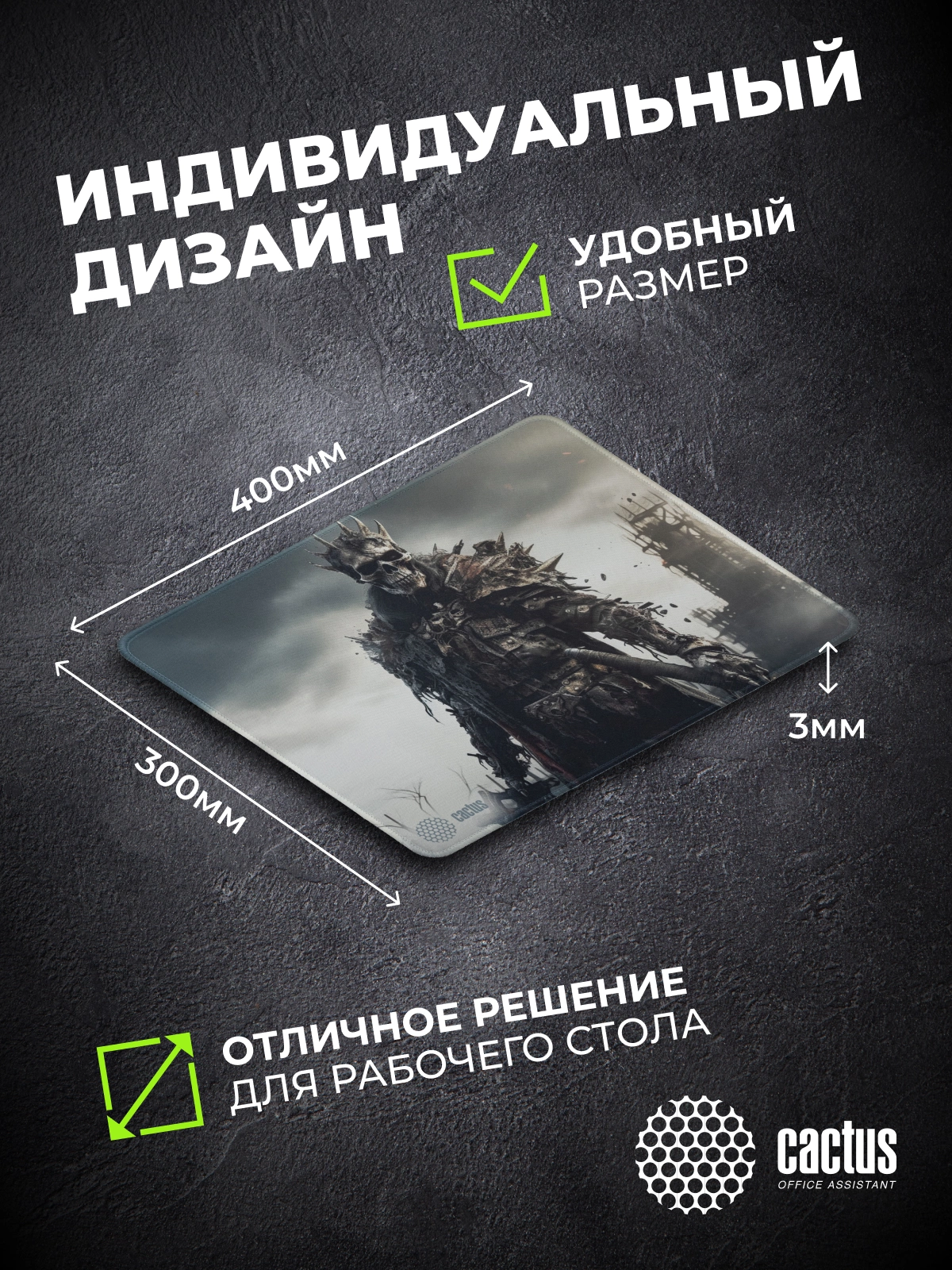 Коврик для мыши Cactus идеально подойдёт фанатам логических головоломок, квестов и стратегий. Он также будет полезен и пользователям офисных программ и графических редакторов, помогая более полно взаимодействовать с компьютерной мышью и точно позиционировать курсор.