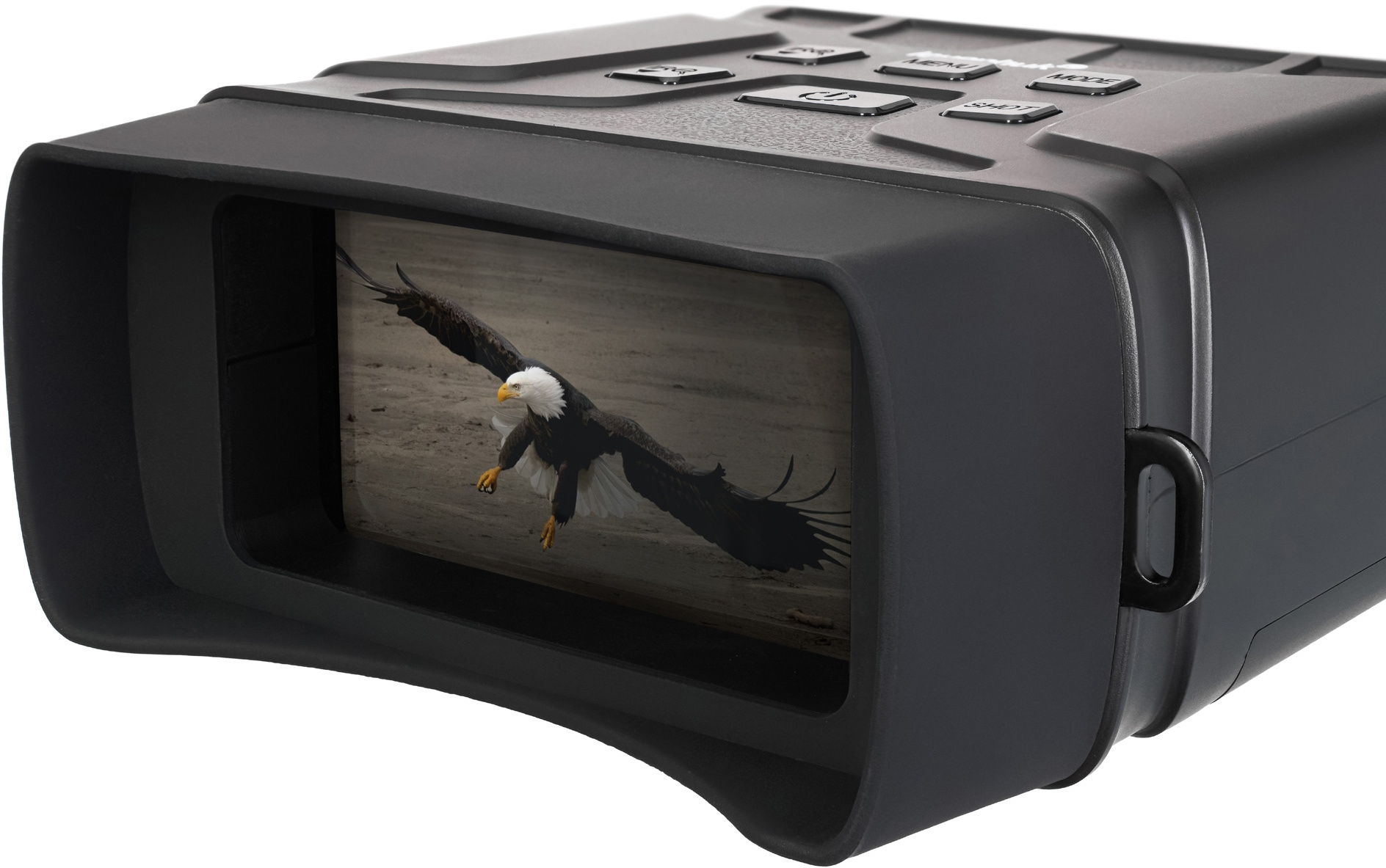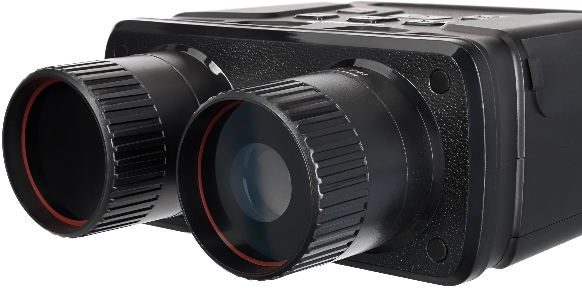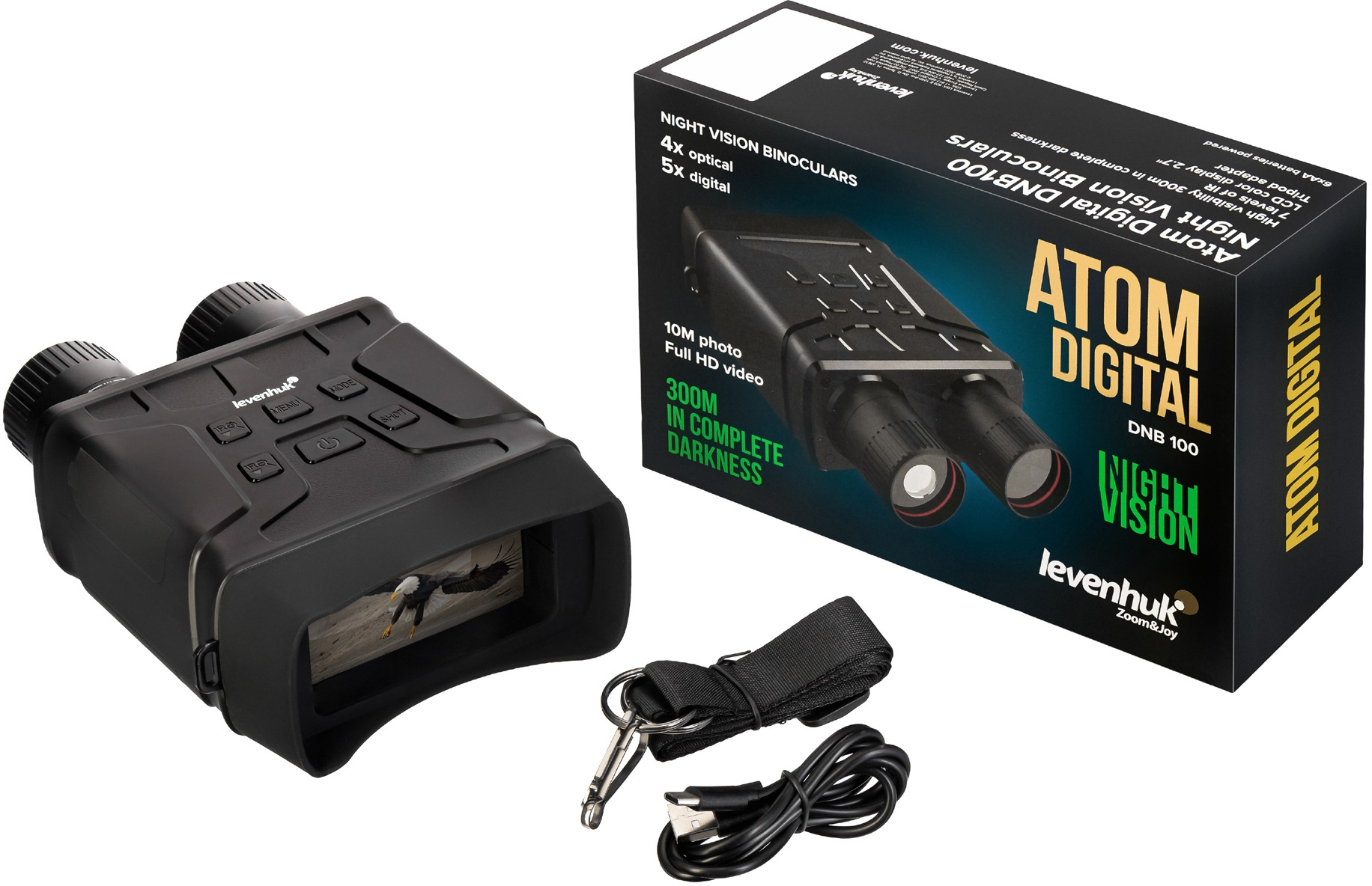 дальность обнаружения: 250–300 (в полной темноте), без ограничений (в сумерках и светлое время суток); функции автоотключения экрана и прибора; 7 уровней яркости подсветки; выпуклые линзы окуляров