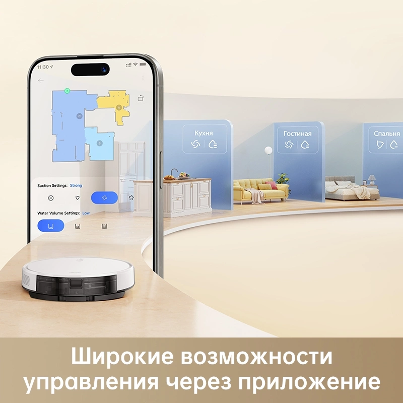построение карты помещения, распознавание ковров, уборка по расписанию, управление со смартфона