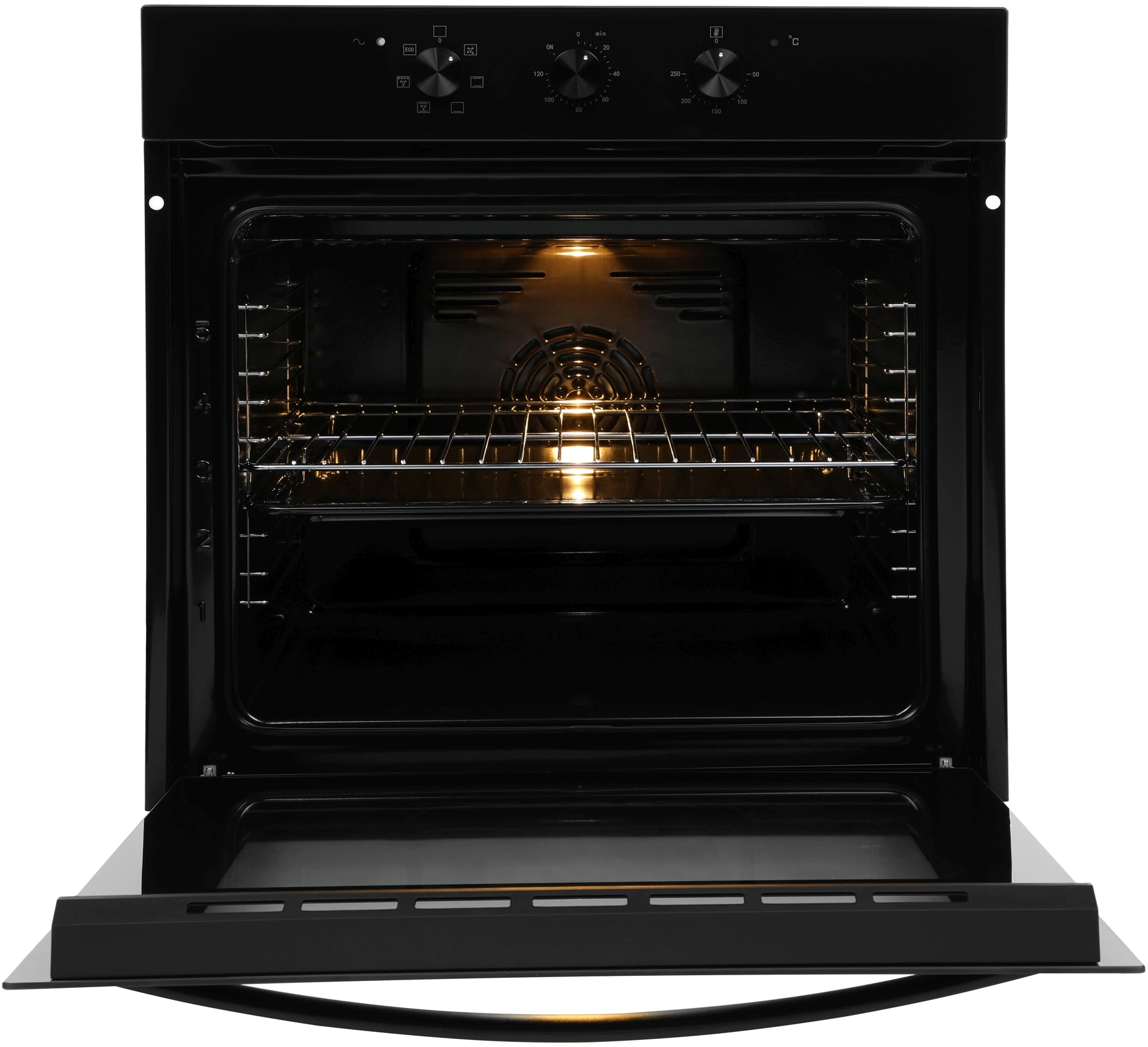 Шкаф имеет стильный черный цвет, который отлично впишется в любой интерьер. Объем камеры составляет 82 литра, что позволяет готовить большие порции блюд одновременно.