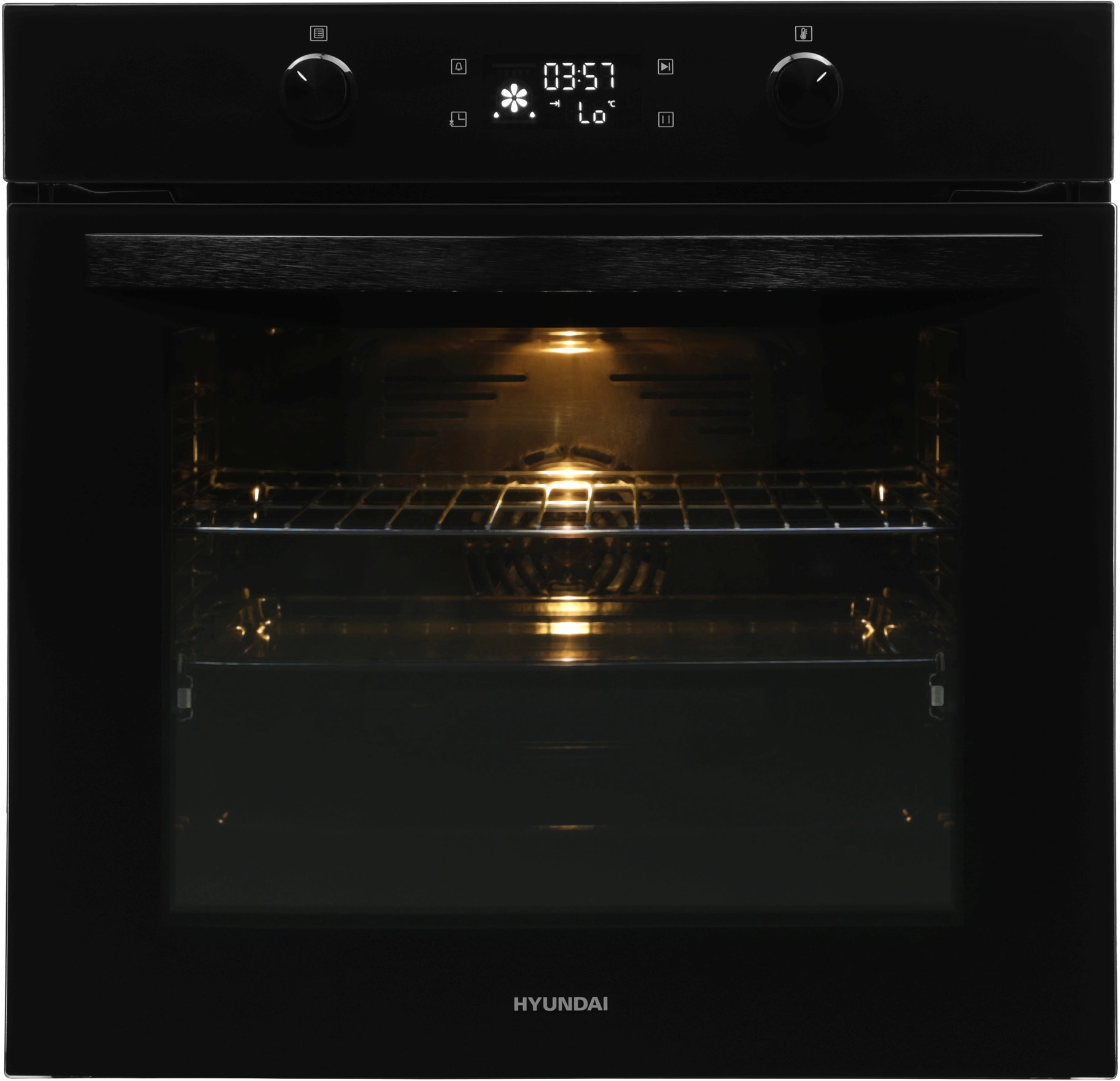 Стильный дизайн. Hyundai HEO 6646 BG выглядит элегантно благодаря стеклянной дверце, переключателям и ручке в черном цвете. Модель гармонично впишется в интерьер современной кухни.