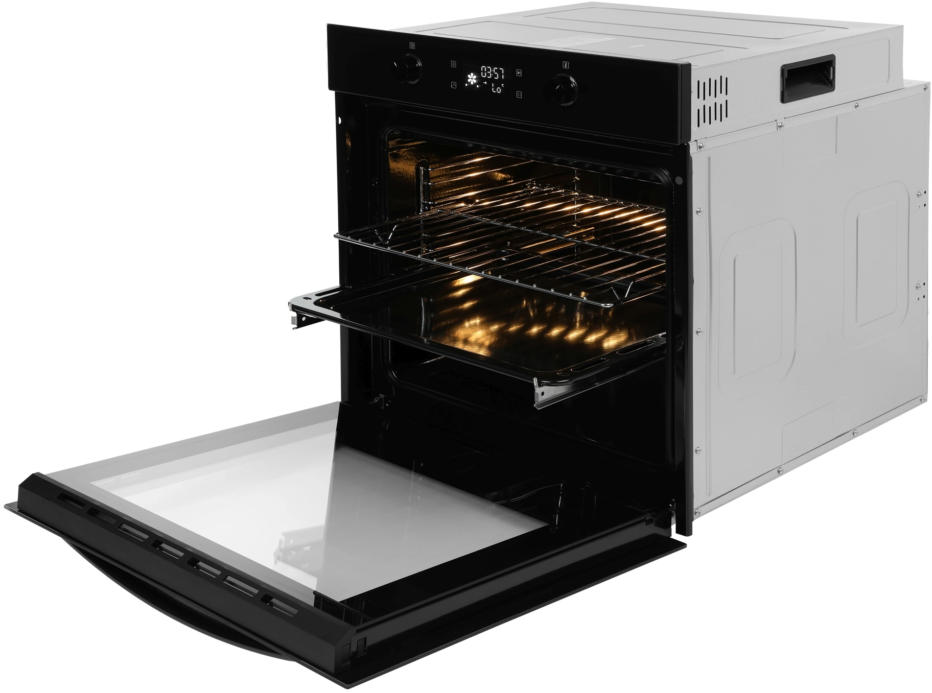 Функция «Отложенный старт». Выбирайте время, к которому нужен готовый обед или праздничное блюдо. Духовка автоматически включится, приготовит запеченную курицу или овощи, затем выключится и подаст сигнал о готовности.
