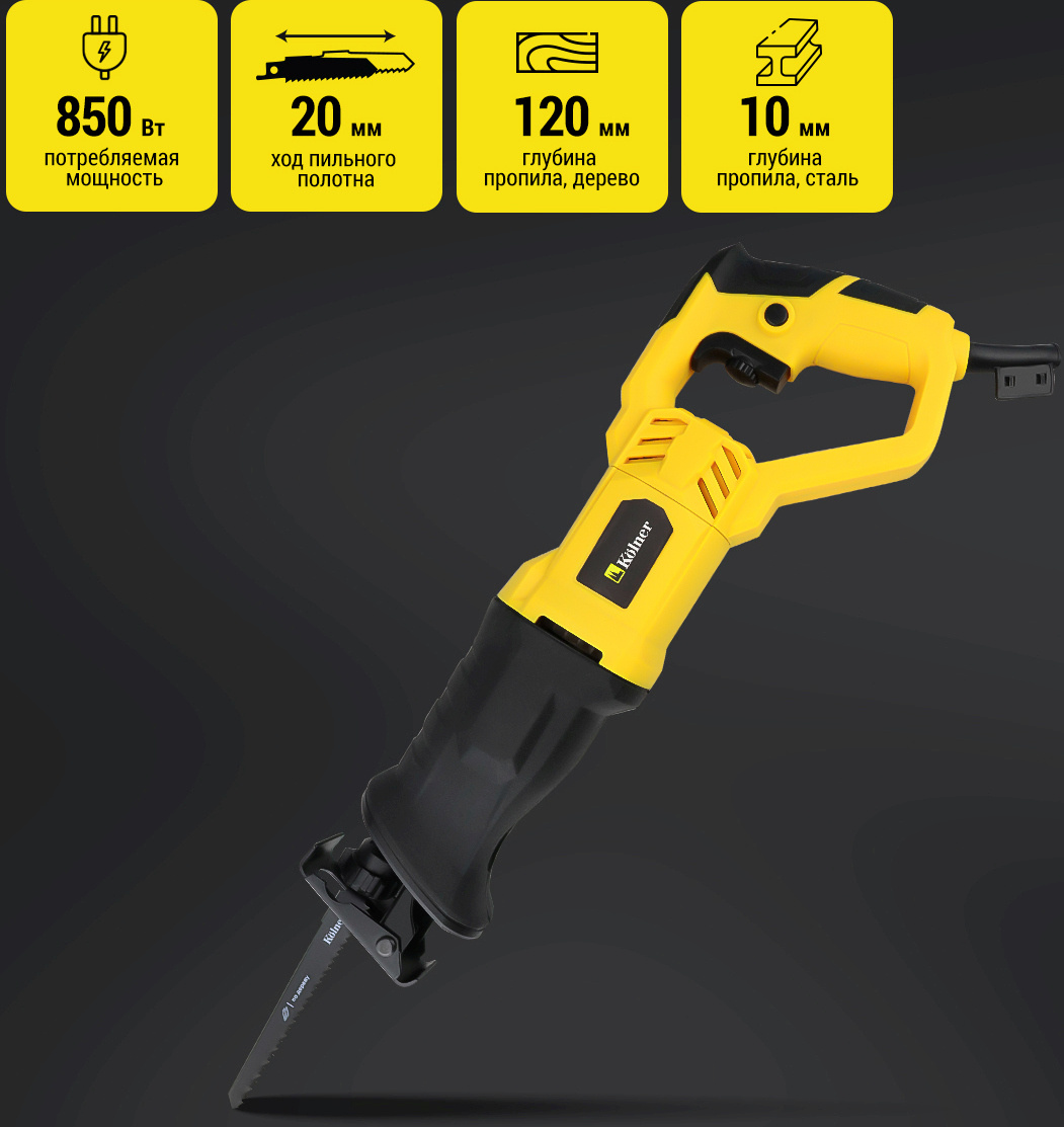 Пила сабельная, руководство по эксплуатации, пильное полотно - 2 шт., шестигранный ключ, упаковка.
