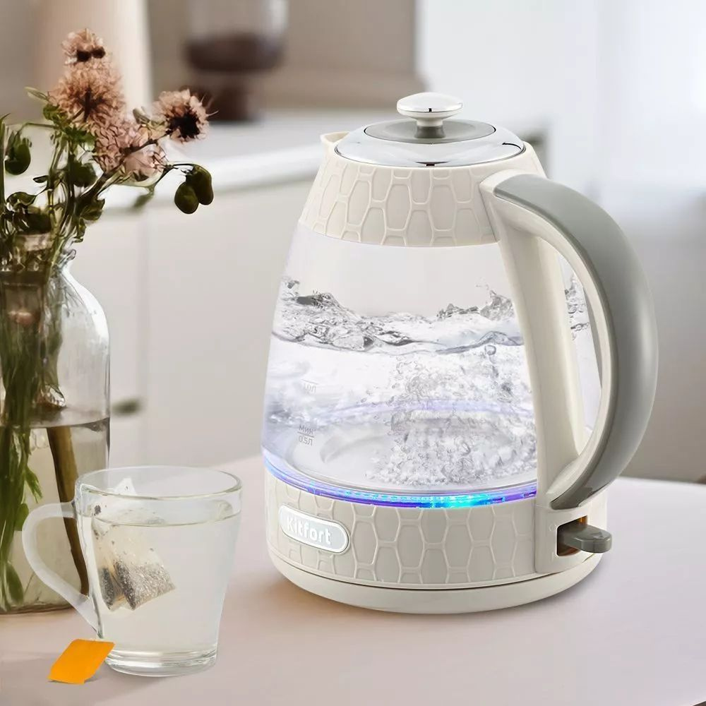 Электрический чайник Kitfort KT-6622 предназначен для быстрого кипячения воды дома, в офисе или на даче. Этот стильный, бежевого цвета, чайник представляет собой идеальное сочетание стекла, пластика и нержавеющей стали. Его мощность 2200 Вт.