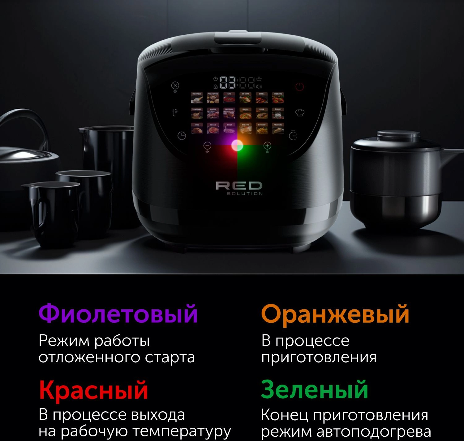 Инновационный сенсорный дисплей с яркими изображениями блюд, Технология RGB-подсветки интуитивно указывает пользователю этапы приготовления