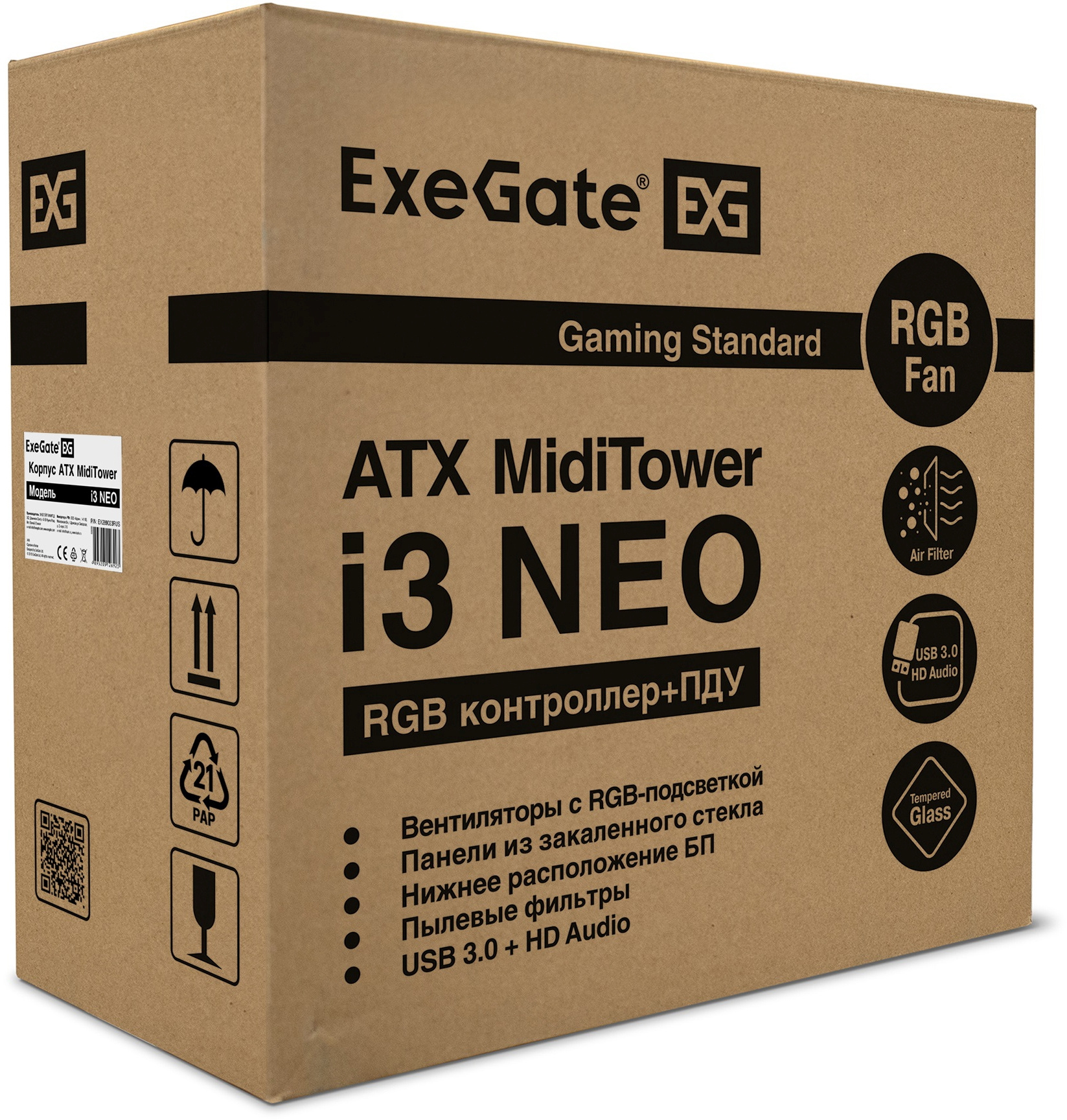 черный без БП ATX 3x120mm 2xUSB2.0 1xUSB3.0 audio ...
