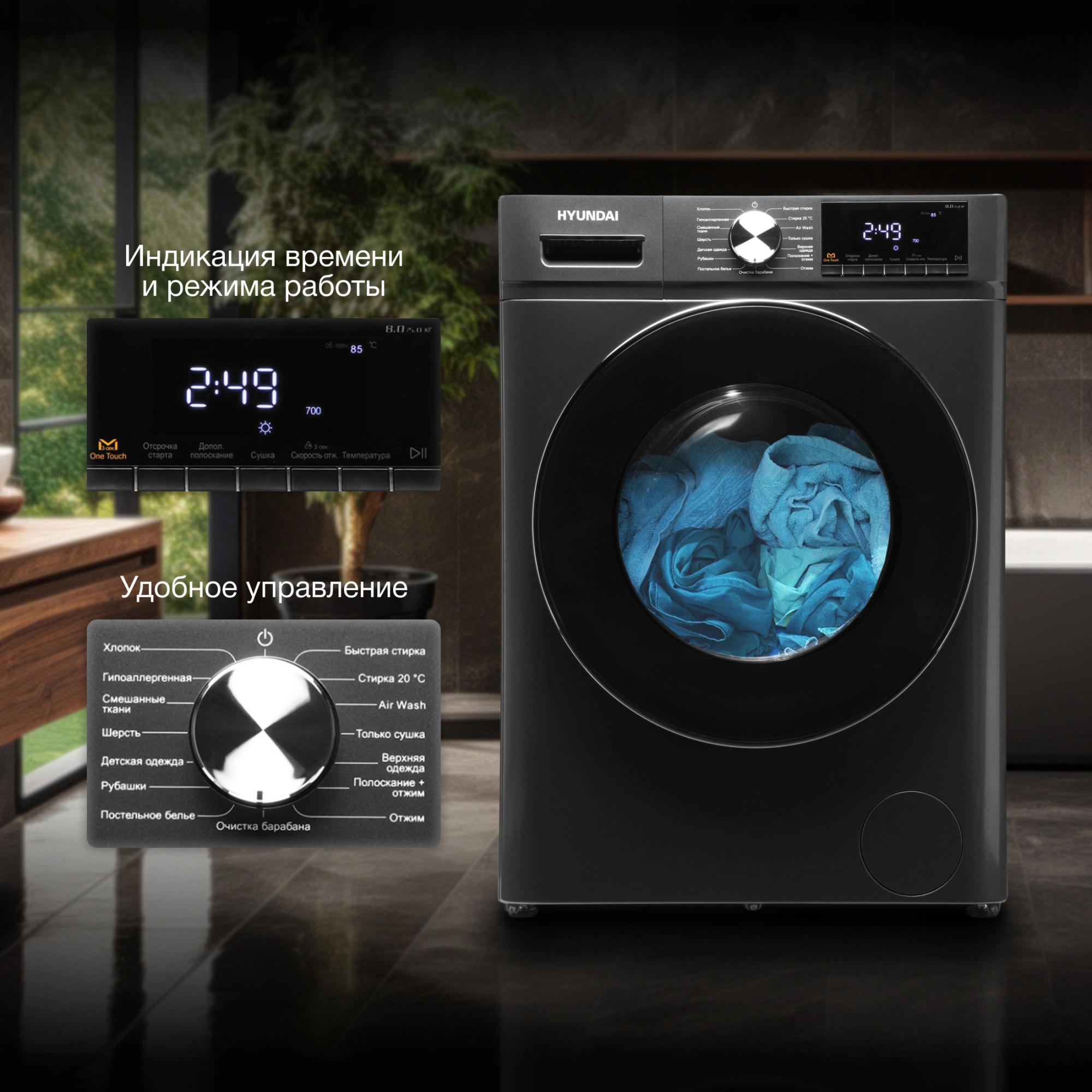 Hyundai WFD8401 превратит стирку и сушку в удовольствие. Разнообразие режимов и тонкие настройки обеспечивают качественный и бережный уход за любыми вещами.
