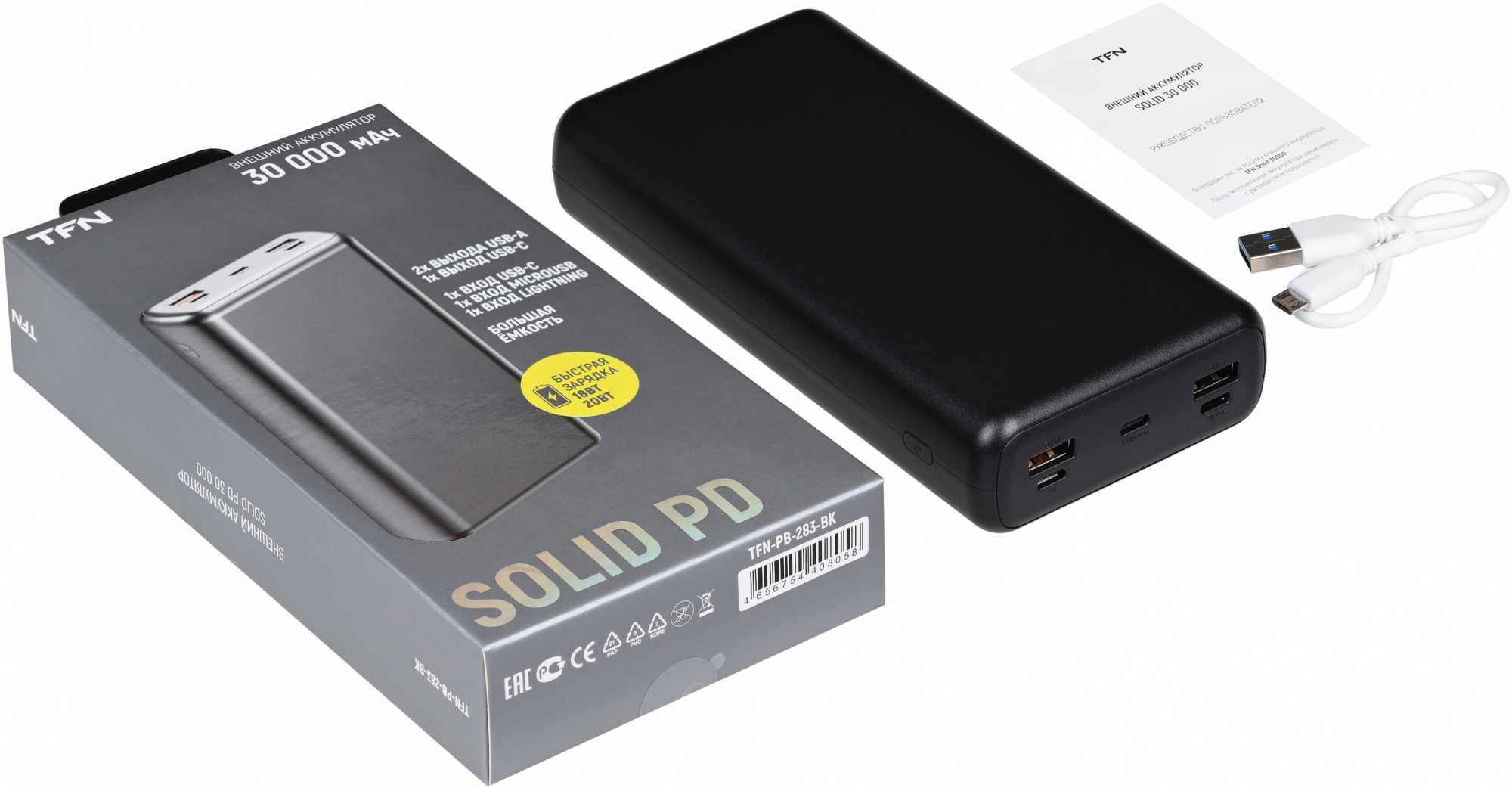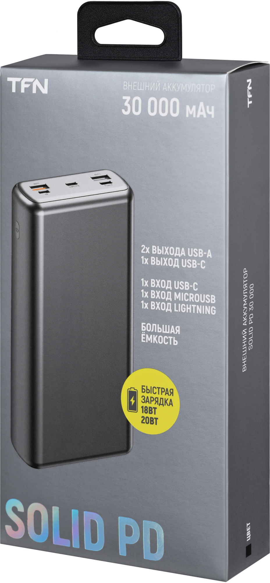 Отличный выбор для путешествий и деловых поездок. Аккумулятор оснащен технологией быстрой зарядки смартфонов мощностью до 22.5Вт.