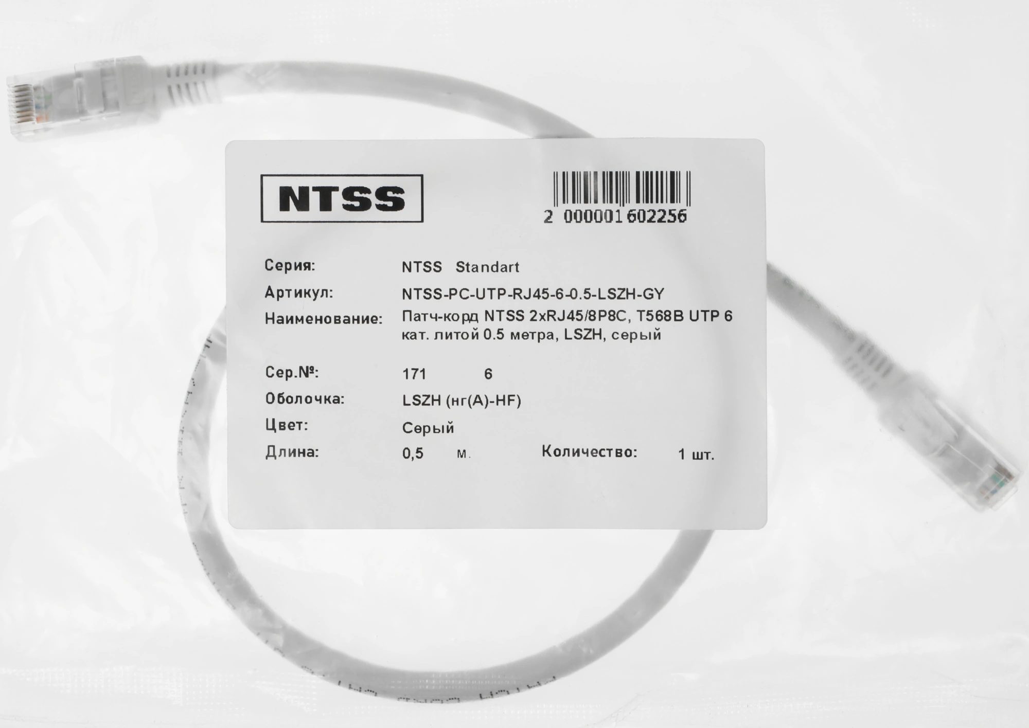 Патч-корд NTSS NTSS-PC-UTP-RJ45-6-0.5-LSZH-GY