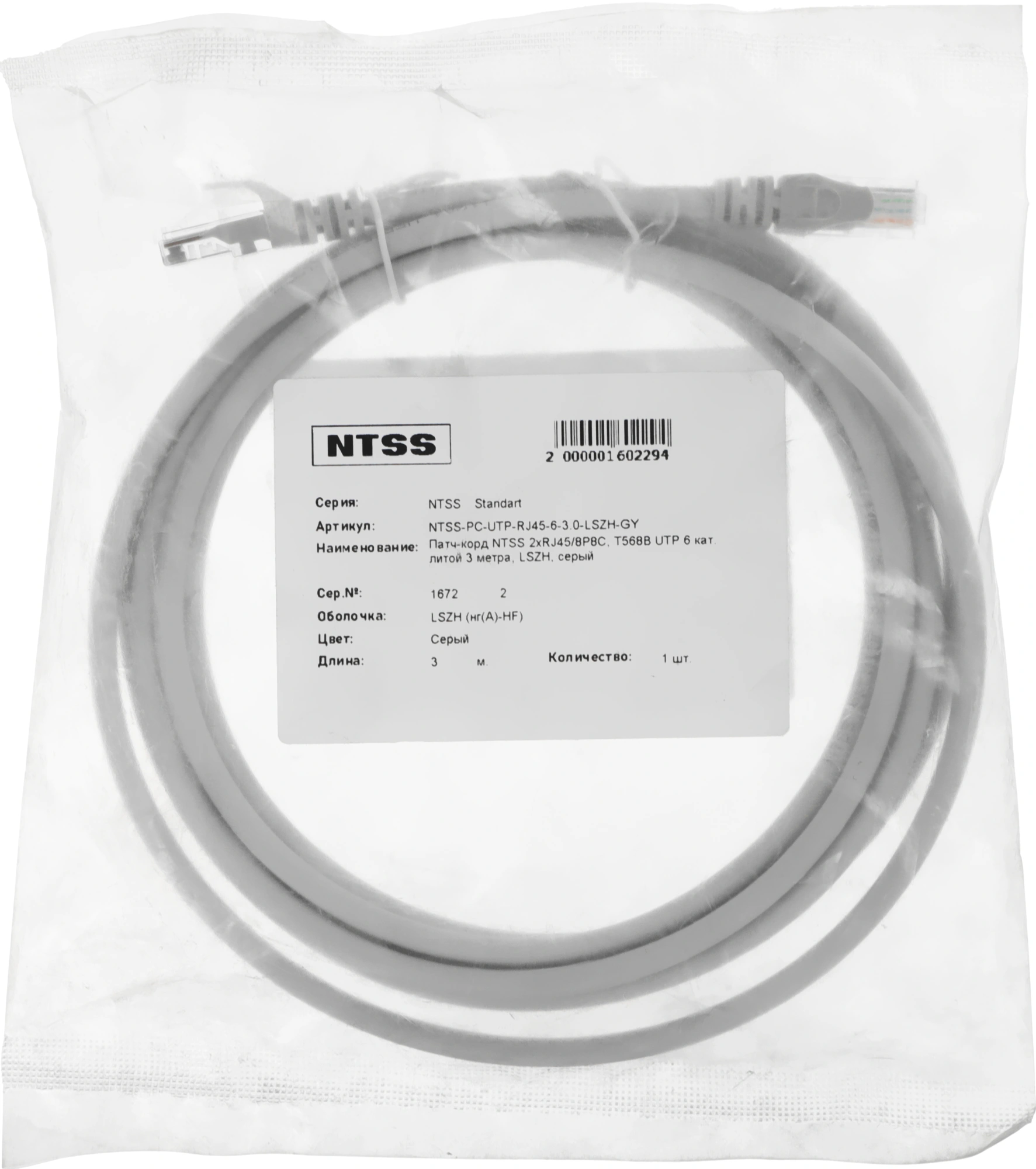 UTP RJ-45 вил.-вилка RJ-45 кат.6 3м серый LSZH 24A...
