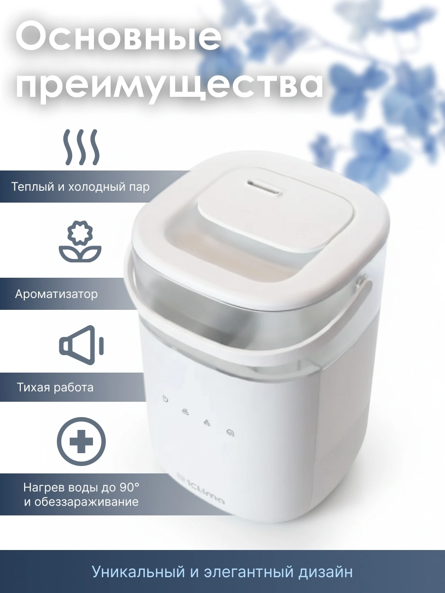 антибактериальное покрытие бака, внутренняя подсветка бака, встроенный ионизатор, датчик уровня воды, пастеризация воды, серебряный картридж, ультрафиолетовая лампа, функция ароматизации воздуха