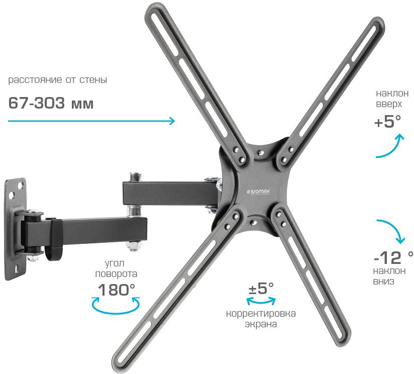 черный 22"-65" макс.30кг настенный поворот и накло...