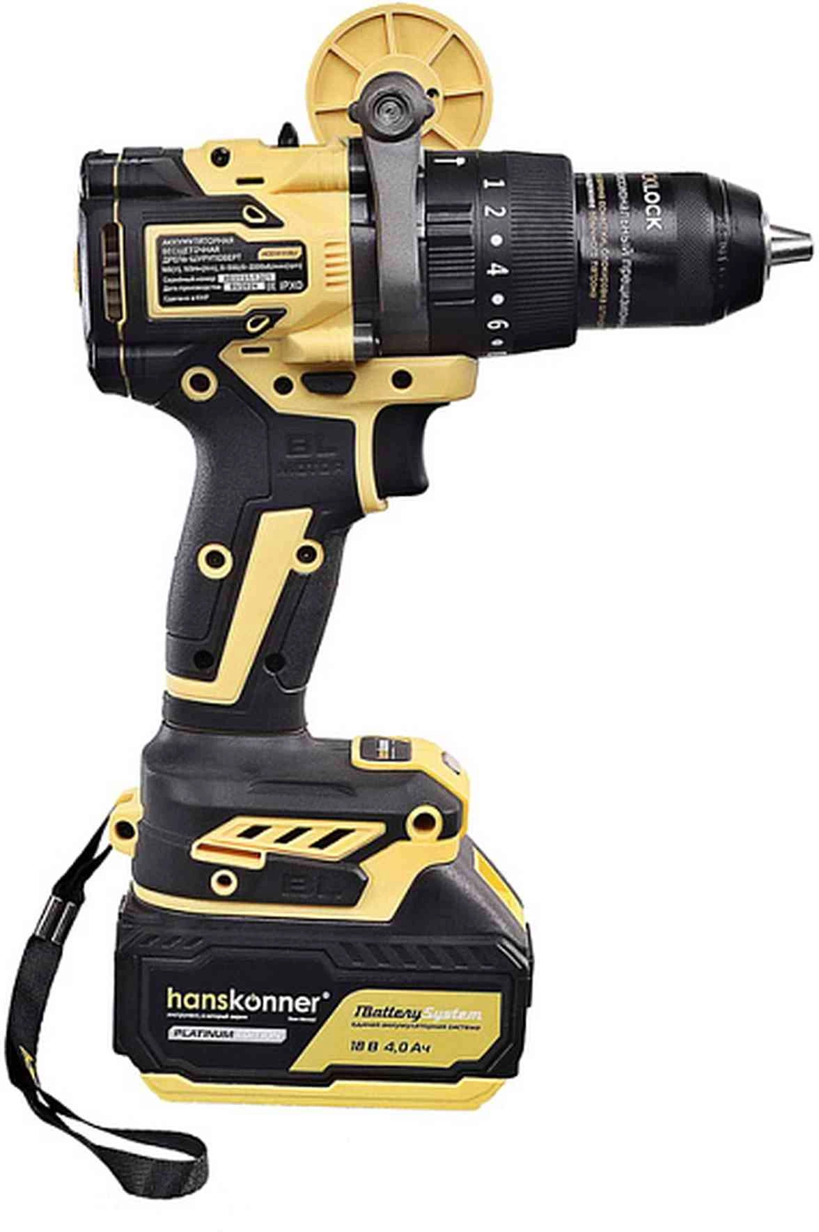 Дрель-шуруповерт, ЗУ, АКБ 2 Ач, АКБ 4 Ач., кейс, USB LED-фонарь, двойная бита.