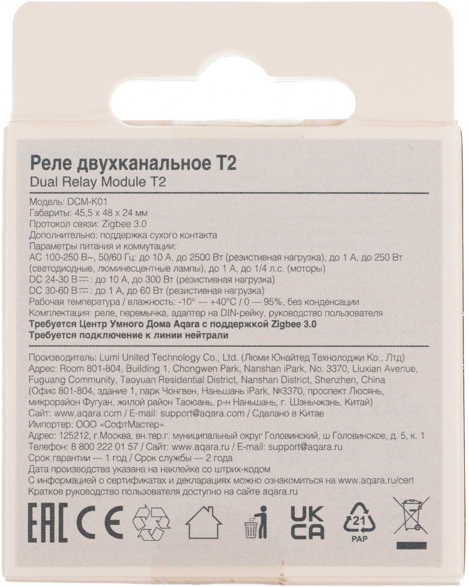 Реле двухканальное T2 с нулевой линией представляет собой модуль для удалённого управления освещением, вентиляторами, гаражными воротами, моторами и другими устройствами. Реле поддерживает сухой контакт.
