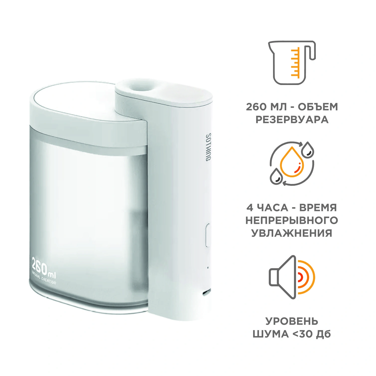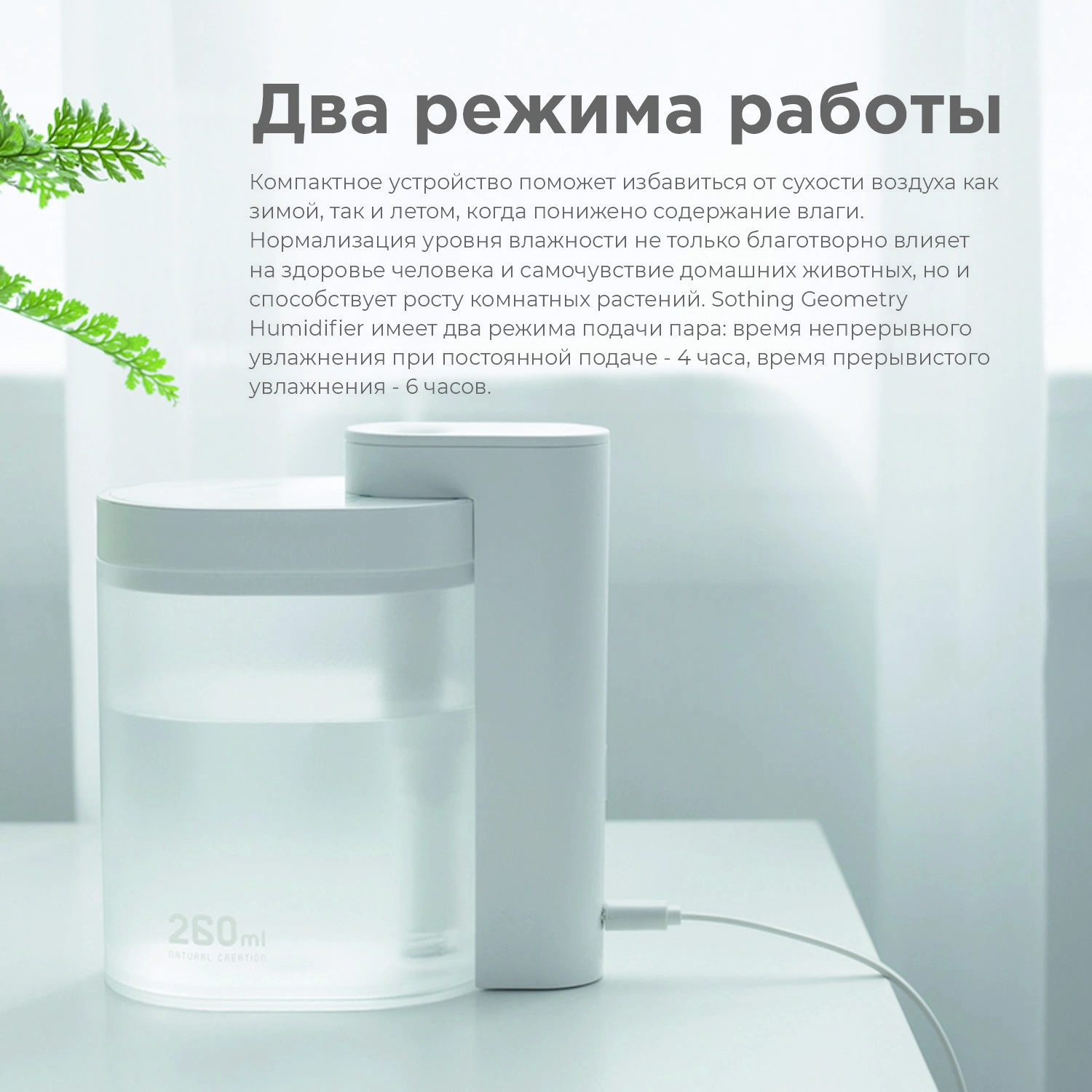 Увлажнитель воздуха SOTHING Geometry не является ароматизатором, добавление в резервуар с водой ароматических масел может вывести его из строя. Комплектация: устройство, 2 фильтра, зарядный кабель USB, руководство.