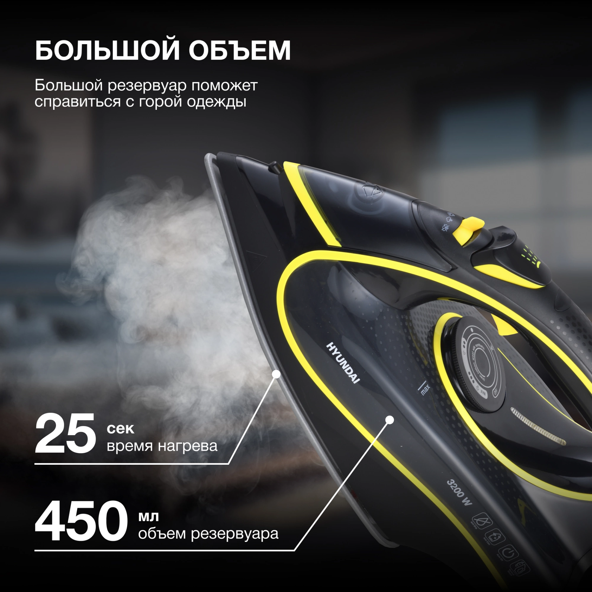 Привлекайте внимание. Утюг Hyundai H-SI01560 представлен в выразительном черно- желтом цвете и станет стильным решением для дома.