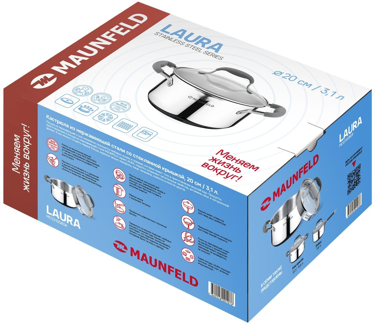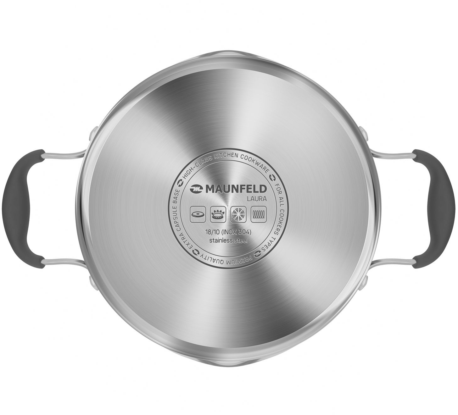 Посуда серии LAURA сделана из самой безопасной высококачественной нержавеющей стали марки 18/10 (INOX304), обладает коррозийной стойкостью, очень легка в уходе. Многослойное капсульное дно обеспечивает равномерный нагрев и распределение тепла благодаря алюминиевой прослойке.