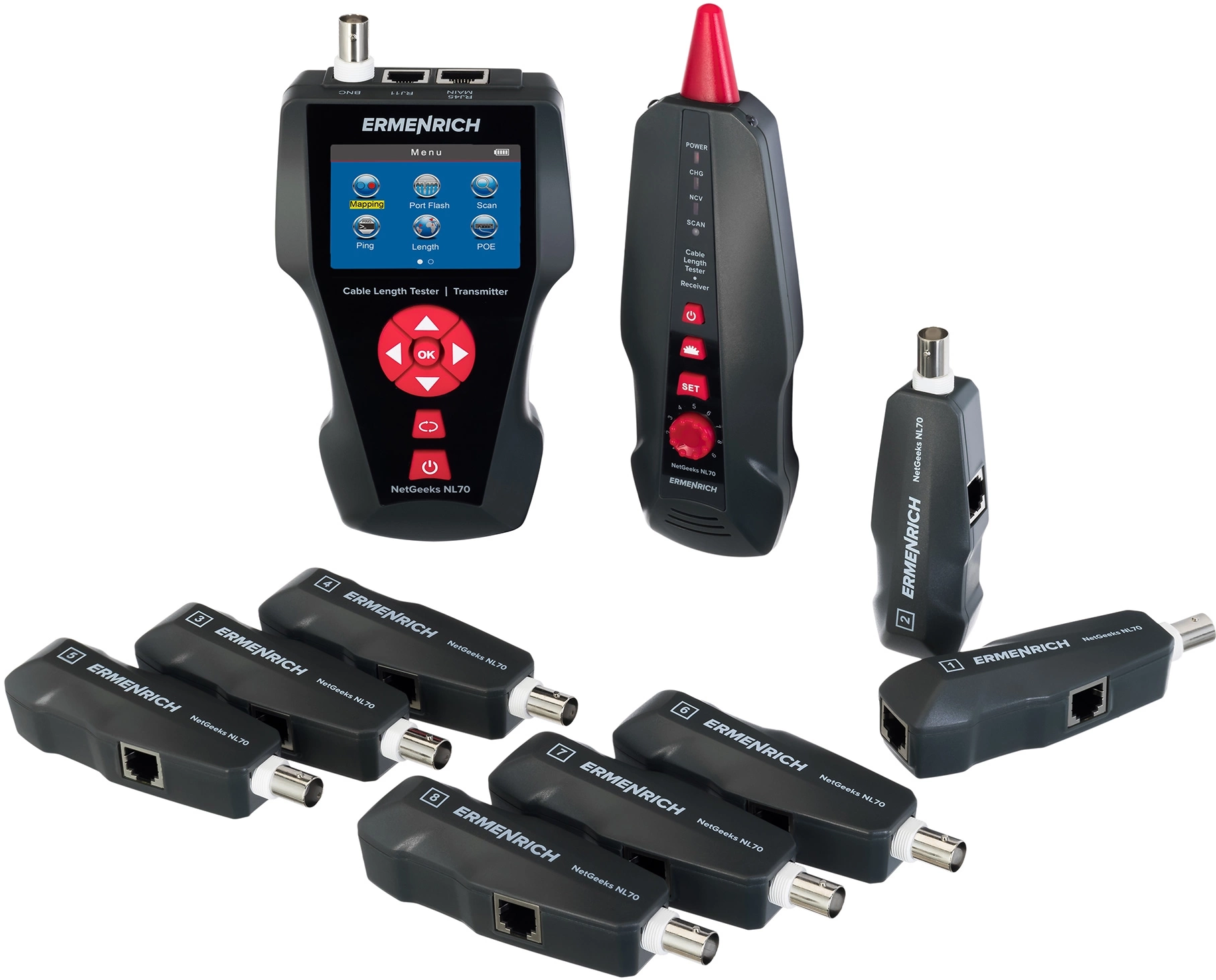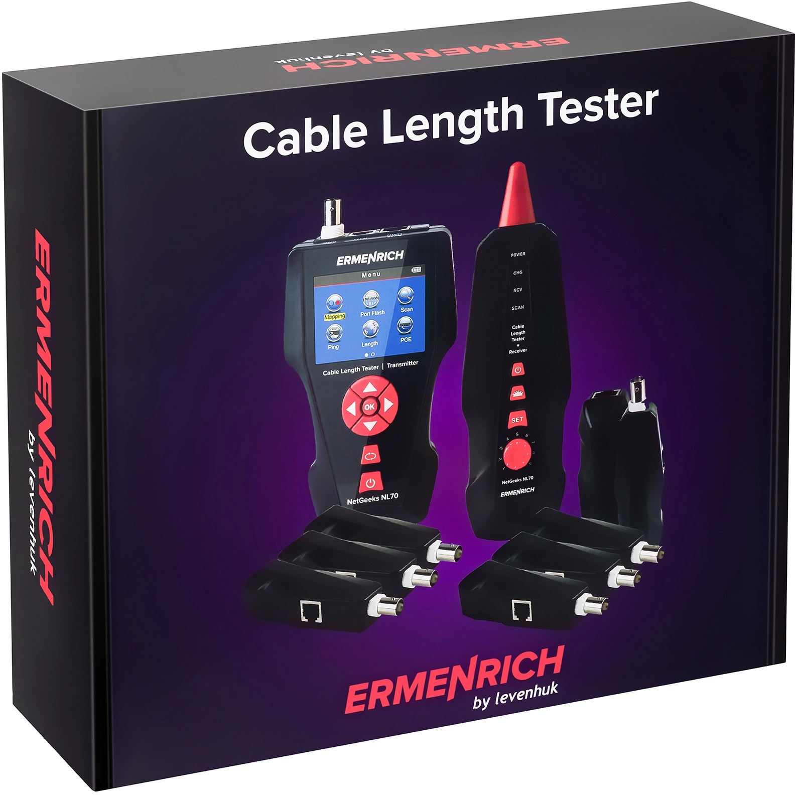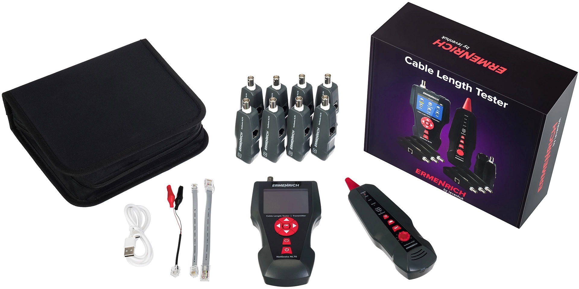Устройство для измерения длины кабелей и для проведения сетевых тестов. Предназначен для работы с кабелями разных типов с проводниками из металла. Это могут быть сетевые (5E/6E), коаксиальные, телефонные кабели.