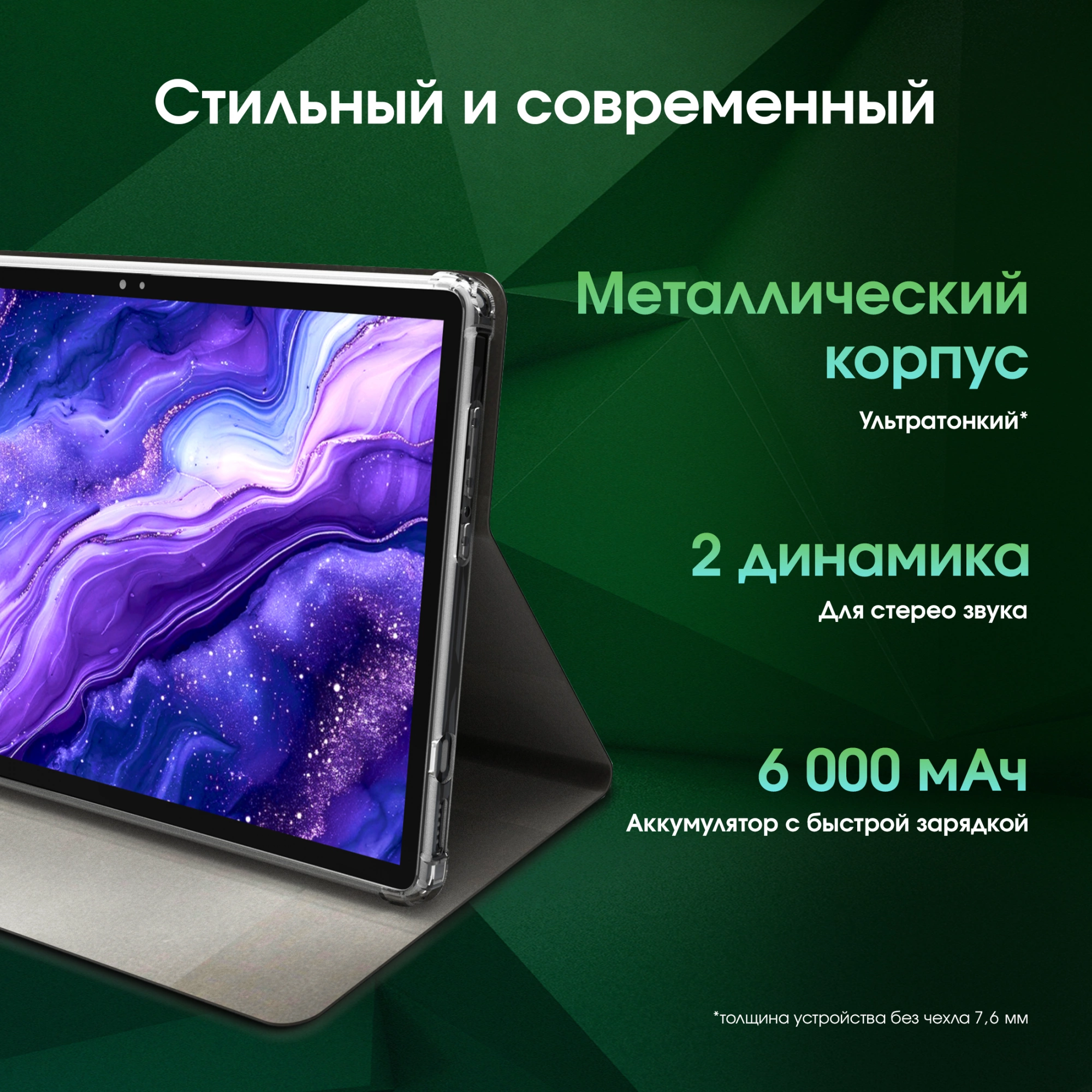 Стильный дизайн в сером цвете и компактный корпус делают планшет не только функциональным, но и модным аксессуаром.