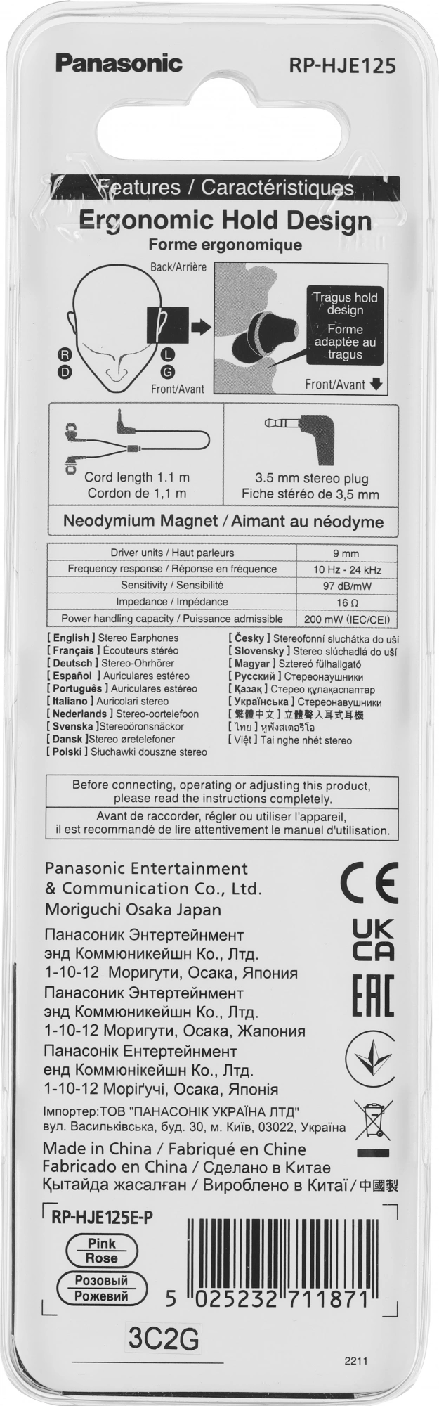 1.1м розовый проводные в ушной раковине (RP-HJE125...