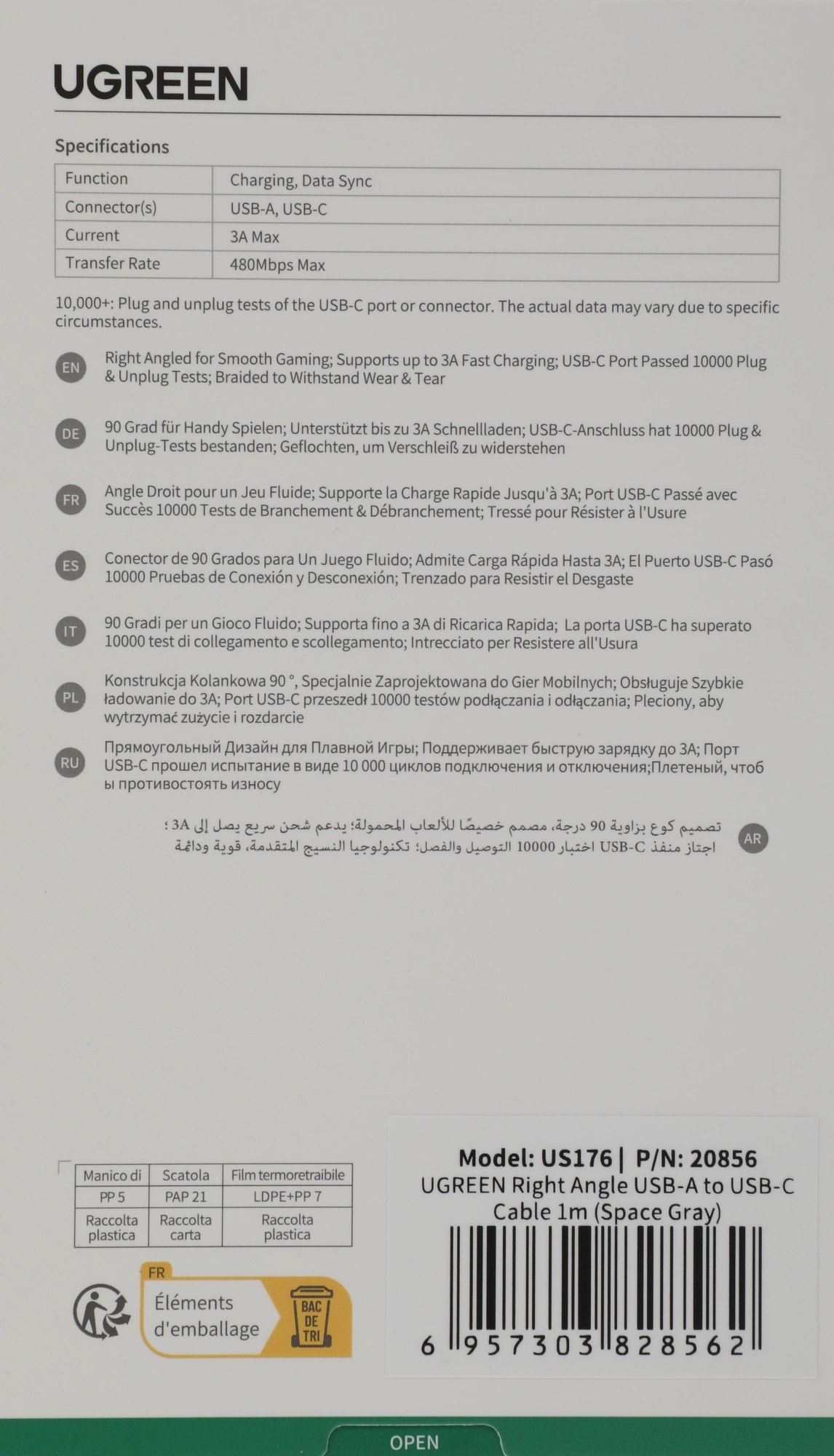 20856 USB (m)-USB Type-C (m) 1м серый