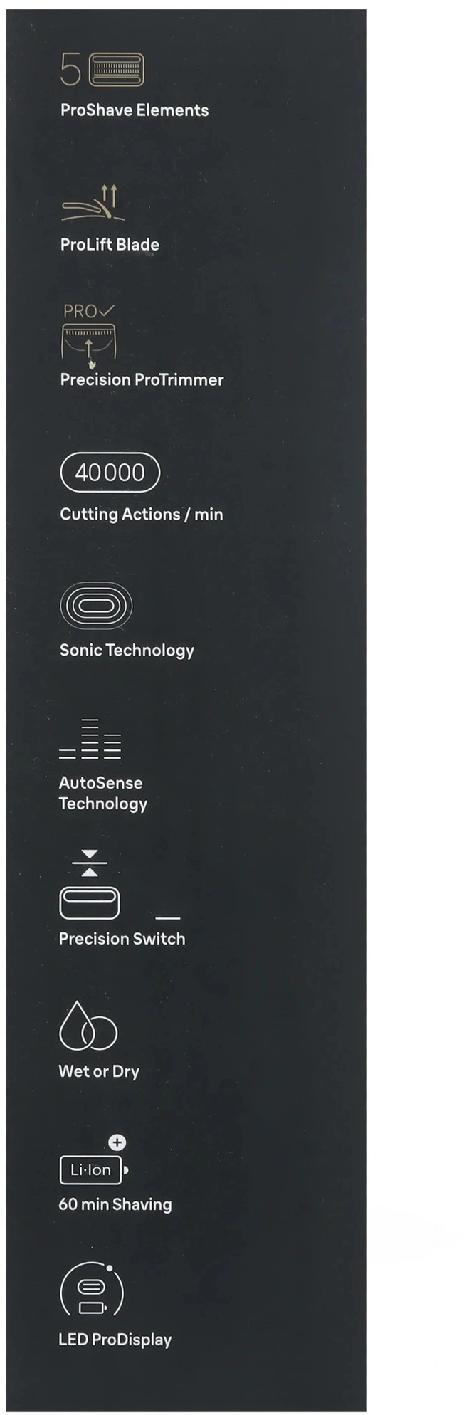 водонепроницаемый корпус, встроенный триммер, дисплей, нескользящая рукоятка/вставка